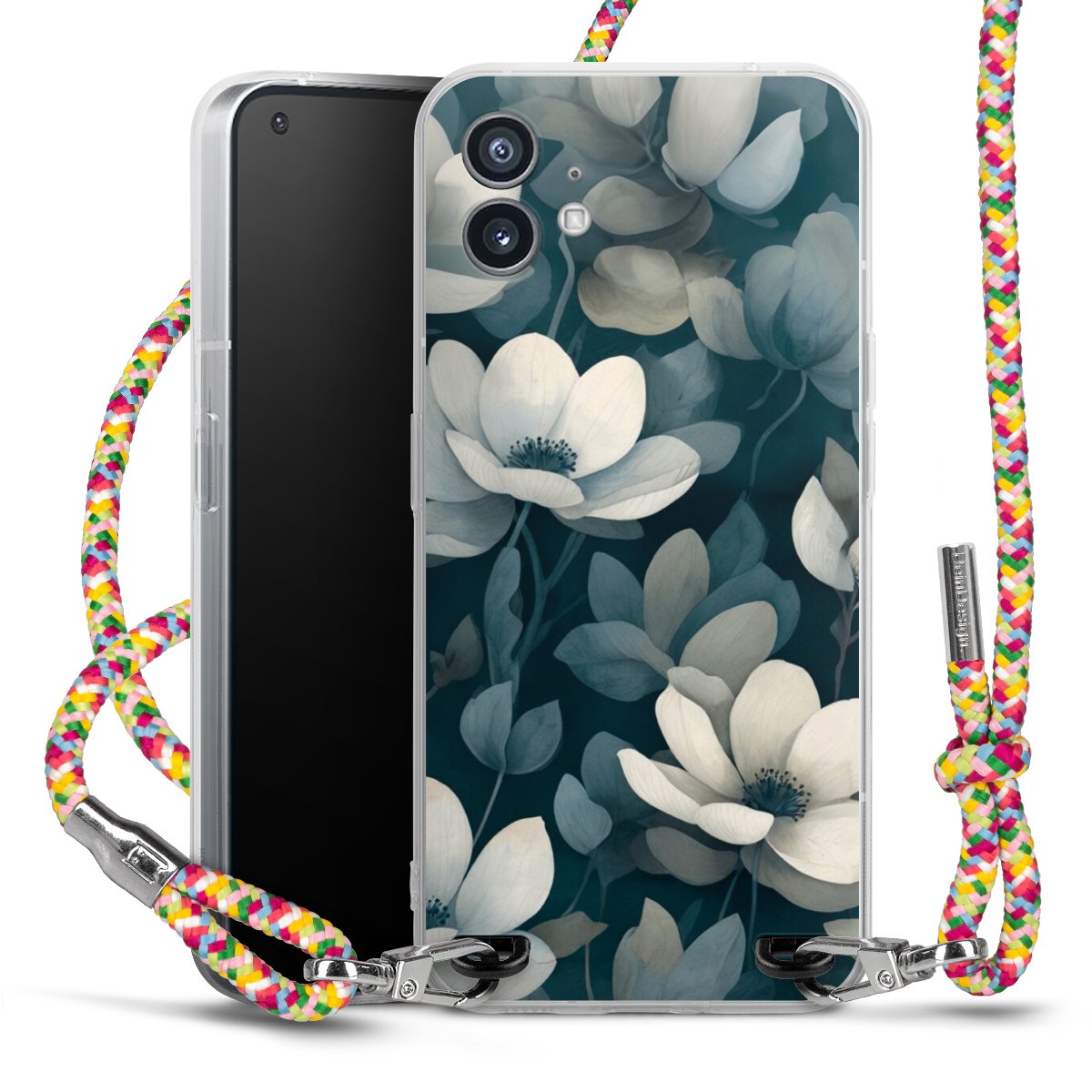 The flexible case is made from a highquality TPU material (thermoplastic Polyurethan). Thanks to its longlasting and break resistant characterisitcs, the case is flexible yet consistent in form and has a great grip and feel. The textile strap made from Polyester gives a chic yet casual accent allowing you to carry your phone like a bag or necklace - a practical gadget perfect for your next adventure. The textile strap is about 1.70 meters long and the length can easily be adjusted through the knots. Our Carry Case is available in Colourful, Mint-Camouflage, Very-Berry, Sahara-Sand and Sparkling-Neon. The ends of the textile strap are covered with metallic end caps to protect them against fraying.