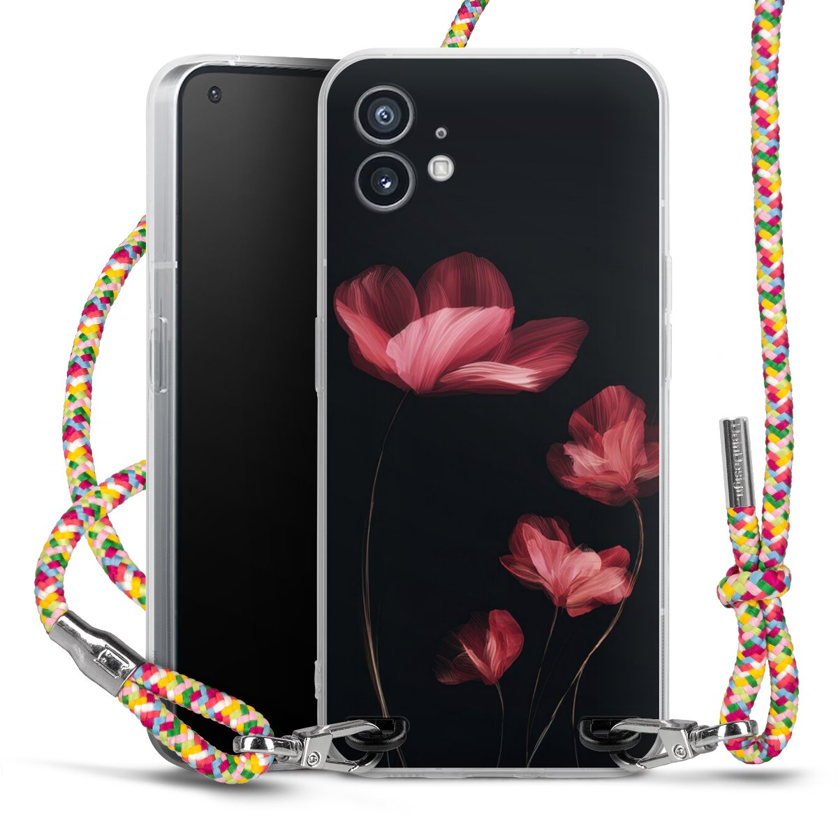 The flexible case is made from a highquality TPU material (thermoplastic Polyurethan). Thanks to its longlasting and break resistant characterisitcs, the case is flexible yet consistent in form and has a great grip and feel. The textile strap made from Polyester gives a chic yet casual accent allowing you to carry your phone like a bag or necklace - a practical gadget perfect for your next adventure. The textile strap is about 1.70 meters long and the length can easily be adjusted through the knots. Our Carry Case is available in Colourful, Mint-Camouflage, Very-Berry, Sahara-Sand and Sparkling-Neon. The ends of the textile strap are covered with metallic end caps to protect them against fraying.