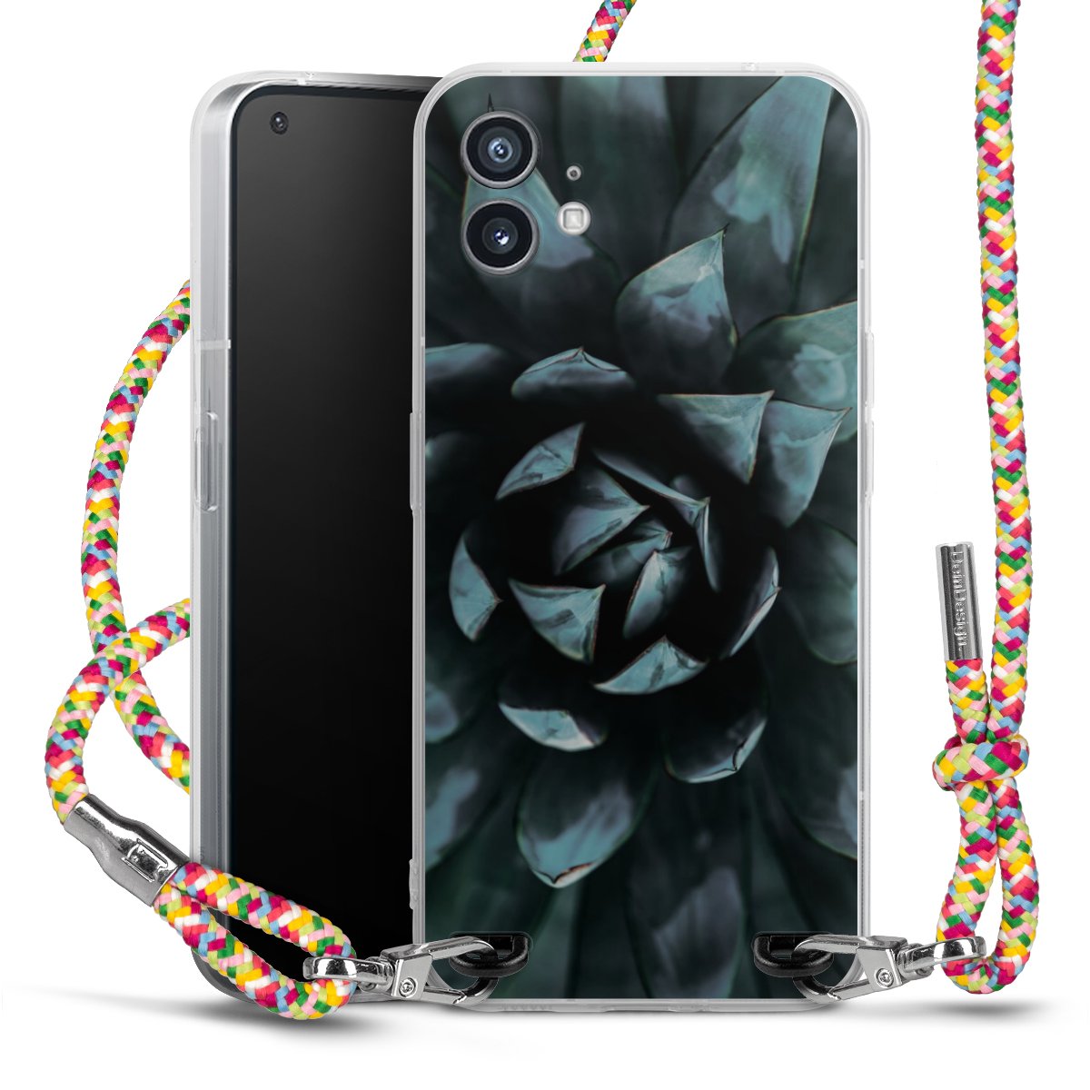 The flexible case is made from a highquality TPU material (thermoplastic Polyurethan). Thanks to its longlasting and break resistant characterisitcs, the case is flexible yet consistent in form and has a great grip and feel. The textile strap made from Polyester gives a chic yet casual accent allowing you to carry your phone like a bag or necklace - a practical gadget perfect for your next adventure. The textile strap is about 1.70 meters long and the length can easily be adjusted through the knots. Our Carry Case is available in Colourful, Mint-Camouflage, Very-Berry, Sahara-Sand and Sparkling-Neon. The ends of the textile strap are covered with metallic end caps to protect them against fraying.