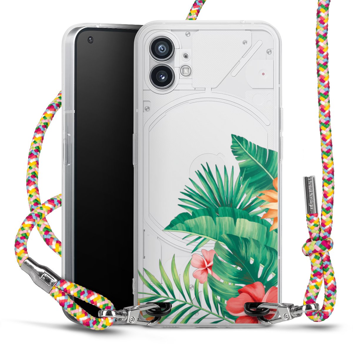 The flexible case is made from a highquality TPU material (thermoplastic Polyurethan). Thanks to its longlasting and break resistant characterisitcs, the case is flexible yet consistent in form and has a great grip and feel. The textile strap made from Polyester gives a chic yet casual accent allowing you to carry your phone like a bag or necklace - a practical gadget perfect for your next adventure. The textile strap is about 1.70 meters long and the length can easily be adjusted through the knots. Our Carry Case is available in Colourful, Mint-Camouflage, Very-Berry, Sahara-Sand and Sparkling-Neon. The ends of the textile strap are covered with metallic end caps to protect them against fraying.