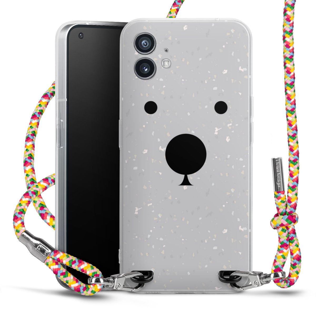 The flexible case is made from a highquality TPU material (thermoplastic Polyurethan). Thanks to its longlasting and break resistant characterisitcs, the case is flexible yet consistent in form and has a great grip and feel. The textile strap made from Polyester gives a chic yet casual accent allowing you to carry your phone like a bag or necklace - a practical gadget perfect for your next adventure. The textile strap is about 1.70 meters long and the length can easily be adjusted through the knots. Our Carry Case is available in Colourful, Mint-Camouflage, Very-Berry, Sahara-Sand and Sparkling-Neon. The ends of the textile strap are covered with metallic end caps to protect them against fraying.