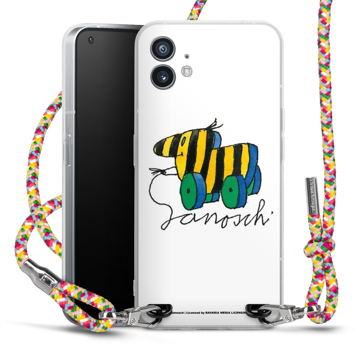 The flexible case is made from a highquality TPU material (thermoplastic Polyurethan). Thanks to its longlasting and break resistant characterisitcs, the case is flexible yet consistent in form and has a great grip and feel. The textile strap made from Polyester gives a chic yet casual accent allowing you to carry your phone like a bag or necklace - a practical gadget perfect for your next adventure. The textile strap is about 1.70 meters long and the length can easily be adjusted through the knots. Our Carry Case is available in Colourful, Mint-Camouflage, Very-Berry, Sahara-Sand and Sparkling-Neon. The ends of the textile strap are covered with metallic end caps to protect them against fraying.