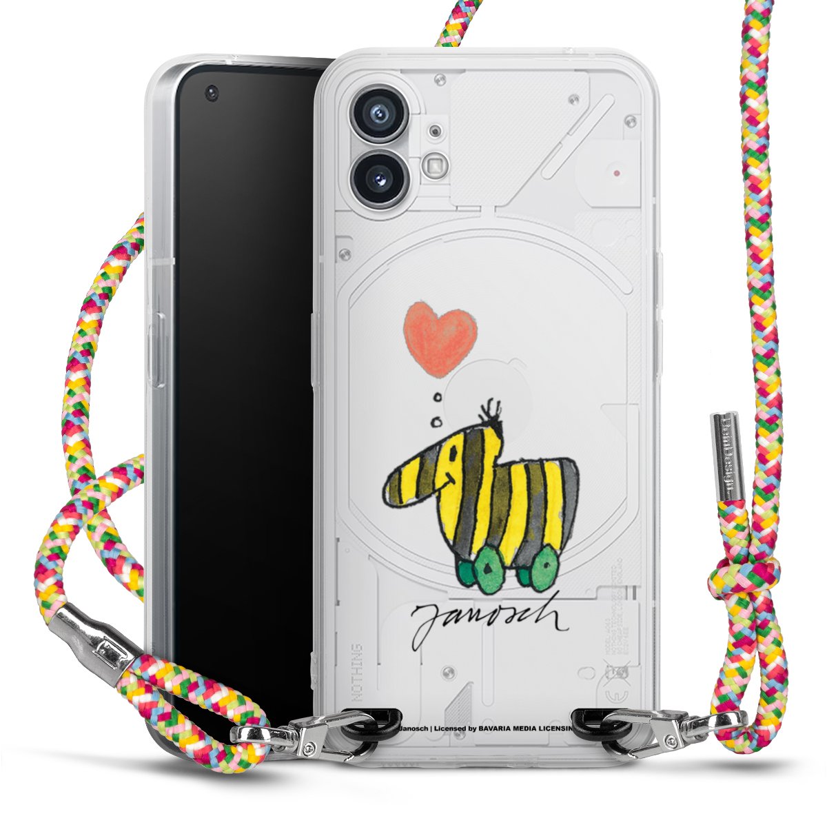 The flexible case is made from a highquality TPU material (thermoplastic Polyurethan). Thanks to its longlasting and break resistant characterisitcs, the case is flexible yet consistent in form and has a great grip and feel. The textile strap made from Polyester gives a chic yet casual accent allowing you to carry your phone like a bag or necklace - a practical gadget perfect for your next adventure. The textile strap is about 1.70 meters long and the length can easily be adjusted through the knots. Our Carry Case is available in Colourful, Mint-Camouflage, Very-Berry, Sahara-Sand and Sparkling-Neon. The ends of the textile strap are covered with metallic end caps to protect them against fraying.