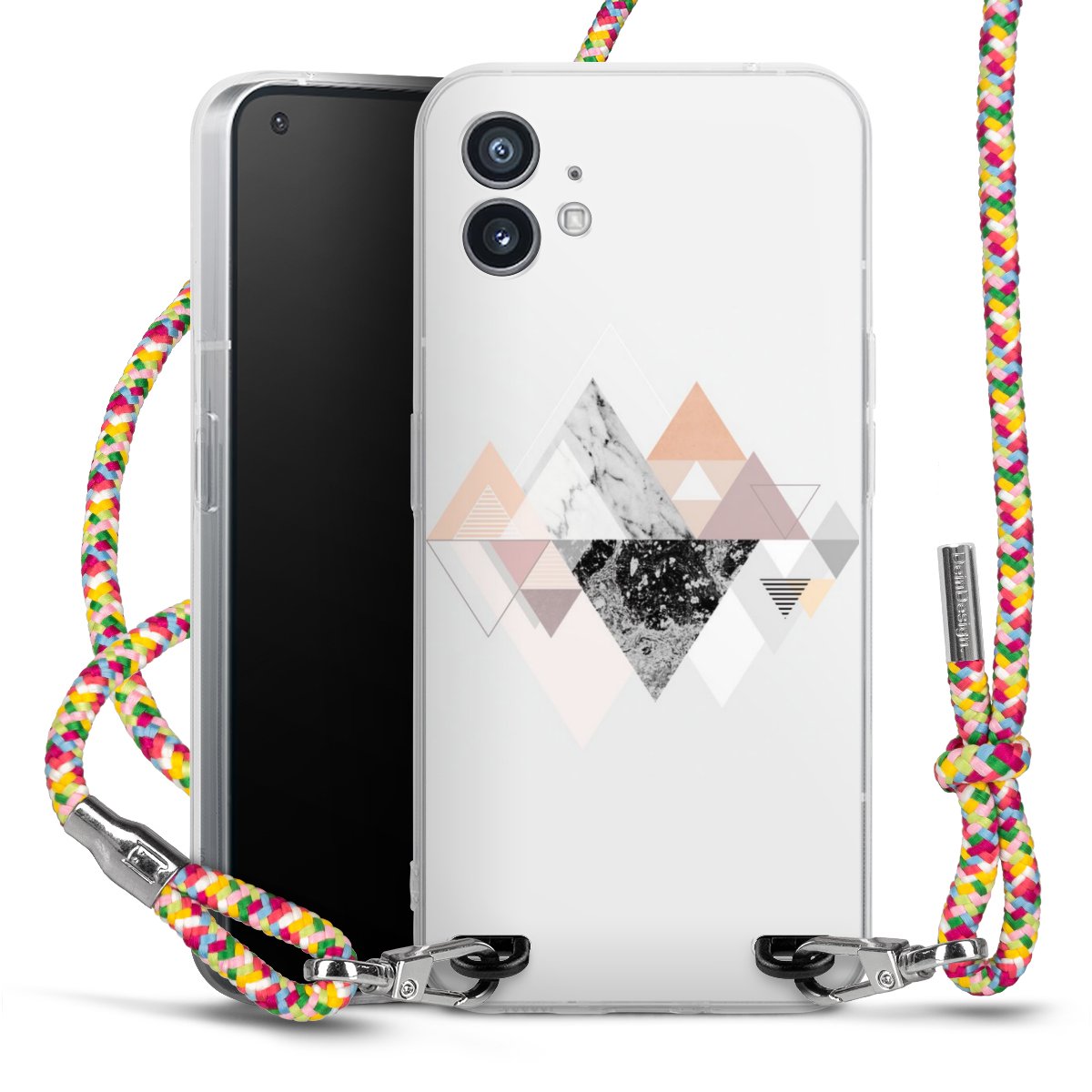 The flexible case is made from a highquality TPU material (thermoplastic Polyurethan). Thanks to its longlasting and break resistant characterisitcs, the case is flexible yet consistent in form and has a great grip and feel. The textile strap made from Polyester gives a chic yet casual accent allowing you to carry your phone like a bag or necklace - a practical gadget perfect for your next adventure. The textile strap is about 1.70 meters long and the length can easily be adjusted through the knots. Our Carry Case is available in Colourful, Mint-Camouflage, Very-Berry, Sahara-Sand and Sparkling-Neon. The ends of the textile strap are covered with metallic end caps to protect them against fraying.