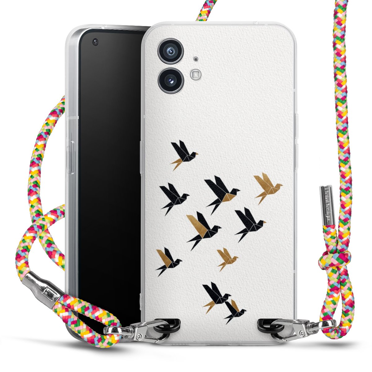 The flexible case is made from a highquality TPU material (thermoplastic Polyurethan). Thanks to its longlasting and break resistant characterisitcs, the case is flexible yet consistent in form and has a great grip and feel. The textile strap made from Polyester gives a chic yet casual accent allowing you to carry your phone like a bag or necklace - a practical gadget perfect for your next adventure. The textile strap is about 1.70 meters long and the length can easily be adjusted through the knots. Our Carry Case is available in Colourful, Mint-Camouflage, Very-Berry, Sahara-Sand and Sparkling-Neon. The ends of the textile strap are covered with metallic end caps to protect them against fraying.