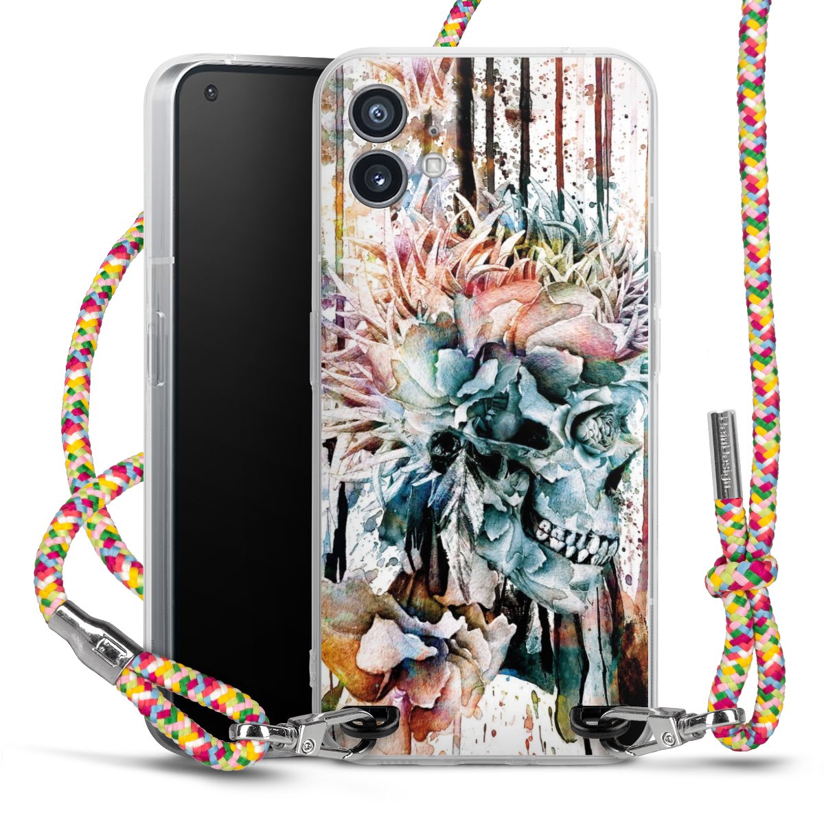 The flexible case is made from a highquality TPU material (thermoplastic Polyurethan). Thanks to its longlasting and break resistant characterisitcs, the case is flexible yet consistent in form and has a great grip and feel. The textile strap made from Polyester gives a chic yet casual accent allowing you to carry your phone like a bag or necklace - a practical gadget perfect for your next adventure. The textile strap is about 1.70 meters long and the length can easily be adjusted through the knots. Our Carry Case is available in Colourful, Mint-Camouflage, Very-Berry, Sahara-Sand and Sparkling-Neon. The ends of the textile strap are covered with metallic end caps to protect them against fraying.