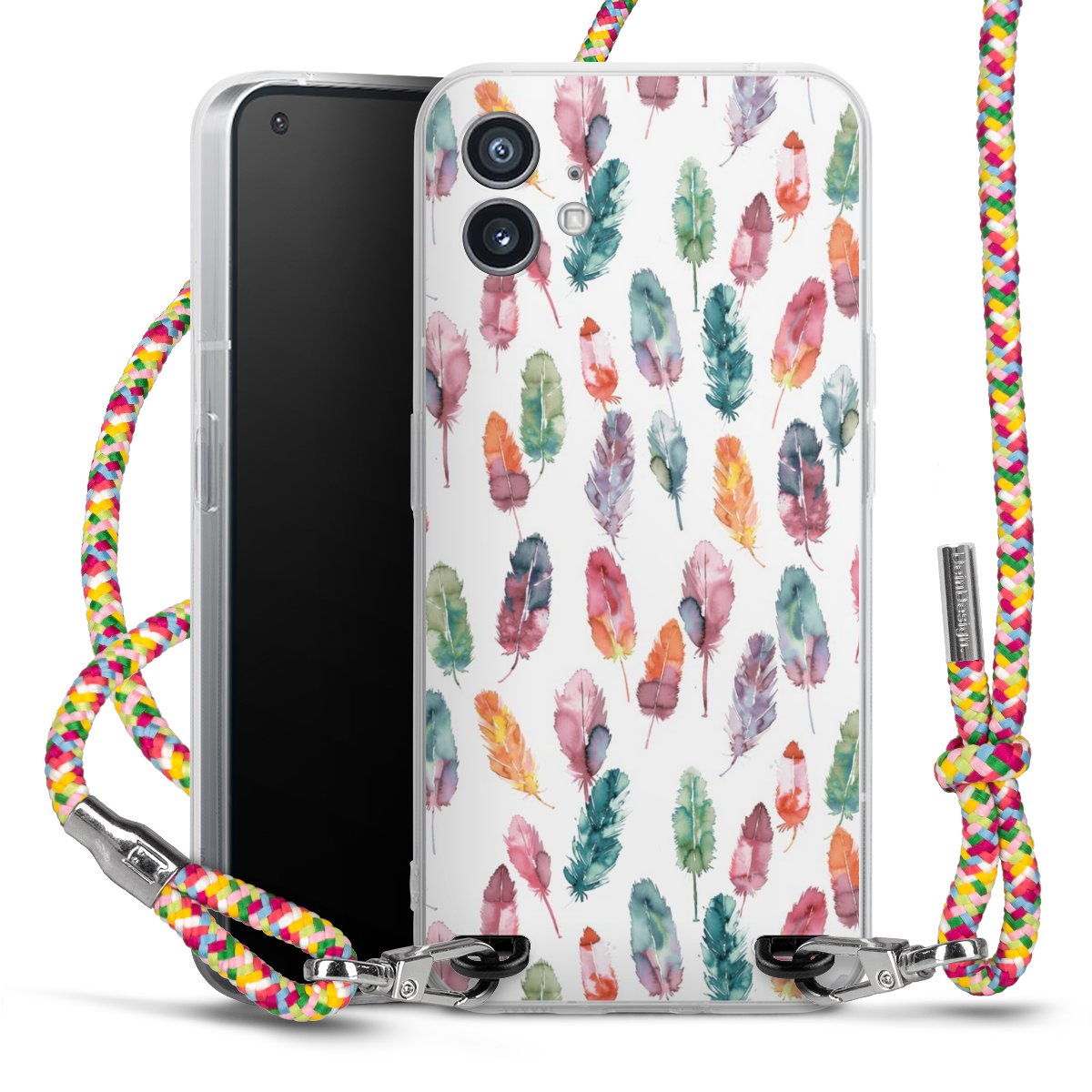 The flexible case is made from a highquality TPU material (thermoplastic Polyurethan). Thanks to its longlasting and break resistant characterisitcs, the case is flexible yet consistent in form and has a great grip and feel. The textile strap made from Polyester gives a chic yet casual accent allowing you to carry your phone like a bag or necklace - a practical gadget perfect for your next adventure. The textile strap is about 1.70 meters long and the length can easily be adjusted through the knots. Our Carry Case is available in Colourful, Mint-Camouflage, Very-Berry, Sahara-Sand and Sparkling-Neon. The ends of the textile strap are covered with metallic end caps to protect them against fraying.