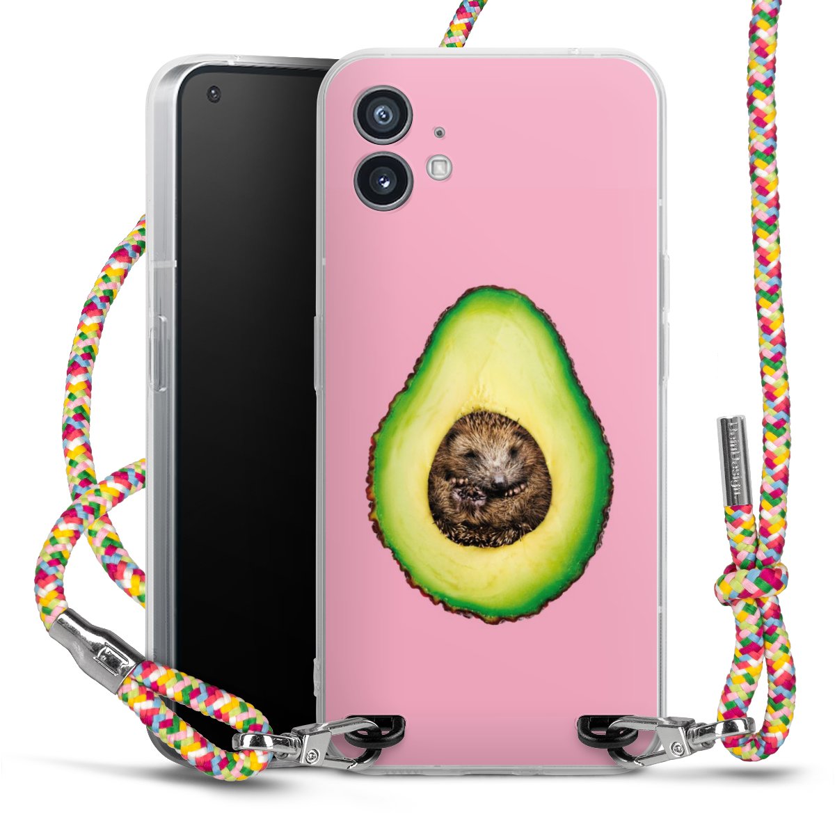 The flexible case is made from a highquality TPU material (thermoplastic Polyurethan). Thanks to its longlasting and break resistant characterisitcs, the case is flexible yet consistent in form and has a great grip and feel. The textile strap made from Polyester gives a chic yet casual accent allowing you to carry your phone like a bag or necklace - a practical gadget perfect for your next adventure. The textile strap is about 1.70 meters long and the length can easily be adjusted through the knots. Our Carry Case is available in Colourful, Mint-Camouflage, Very-Berry, Sahara-Sand and Sparkling-Neon. The ends of the textile strap are covered with metallic end caps to protect them against fraying.