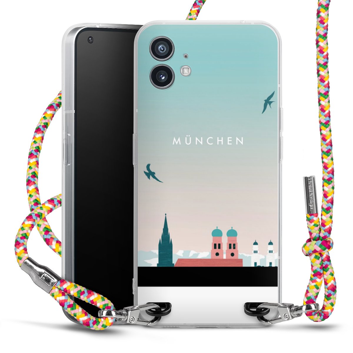 The flexible case is made from a highquality TPU material (thermoplastic Polyurethan). Thanks to its longlasting and break resistant characterisitcs, the case is flexible yet consistent in form and has a great grip and feel. The textile strap made from Polyester gives a chic yet casual accent allowing you to carry your phone like a bag or necklace - a practical gadget perfect for your next adventure. The textile strap is about 1.70 meters long and the length can easily be adjusted through the knots. Our Carry Case is available in Colourful, Mint-Camouflage, Very-Berry, Sahara-Sand and Sparkling-Neon. The ends of the textile strap are covered with metallic end caps to protect them against fraying.