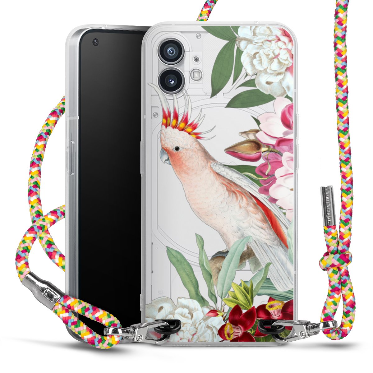 The flexible case is made from a highquality TPU material (thermoplastic Polyurethan). Thanks to its longlasting and break resistant characterisitcs, the case is flexible yet consistent in form and has a great grip and feel. The textile strap made from Polyester gives a chic yet casual accent allowing you to carry your phone like a bag or necklace - a practical gadget perfect for your next adventure. The textile strap is about 1.70 meters long and the length can easily be adjusted through the knots. Our Carry Case is available in Colourful, Mint-Camouflage, Very-Berry, Sahara-Sand and Sparkling-Neon. The ends of the textile strap are covered with metallic end caps to protect them against fraying.