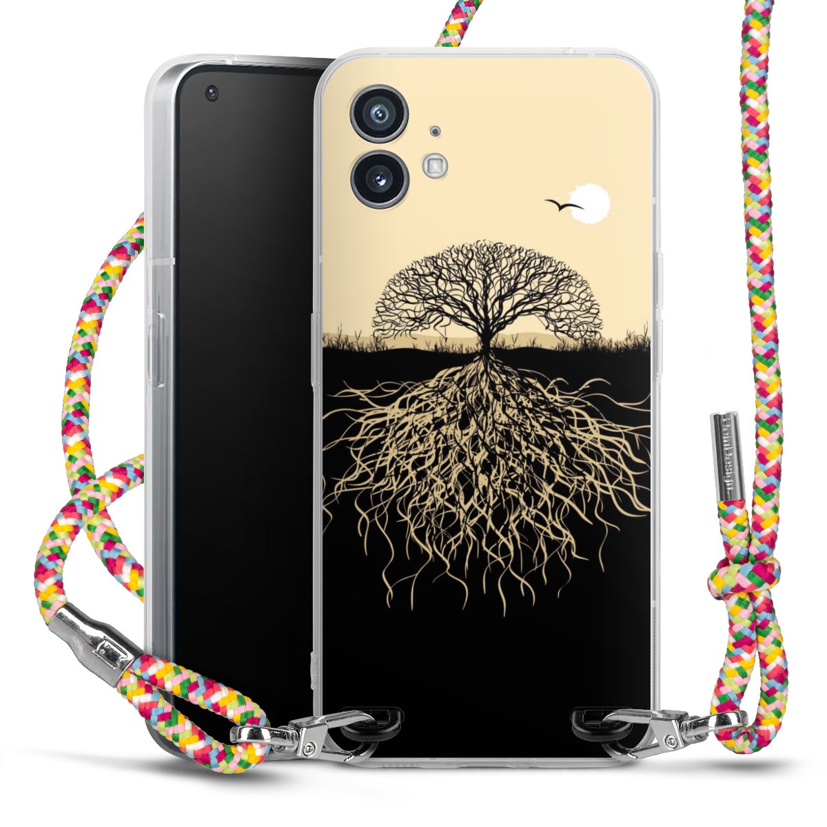 The flexible case is made from a highquality TPU material (thermoplastic Polyurethan). Thanks to its longlasting and break resistant characterisitcs, the case is flexible yet consistent in form and has a great grip and feel. The textile strap made from Polyester gives a chic yet casual accent allowing you to carry your phone like a bag or necklace - a practical gadget perfect for your next adventure. The textile strap is about 1.70 meters long and the length can easily be adjusted through the knots. Our Carry Case is available in Colourful, Mint-Camouflage, Very-Berry, Sahara-Sand and Sparkling-Neon. The ends of the textile strap are covered with metallic end caps to protect them against fraying.