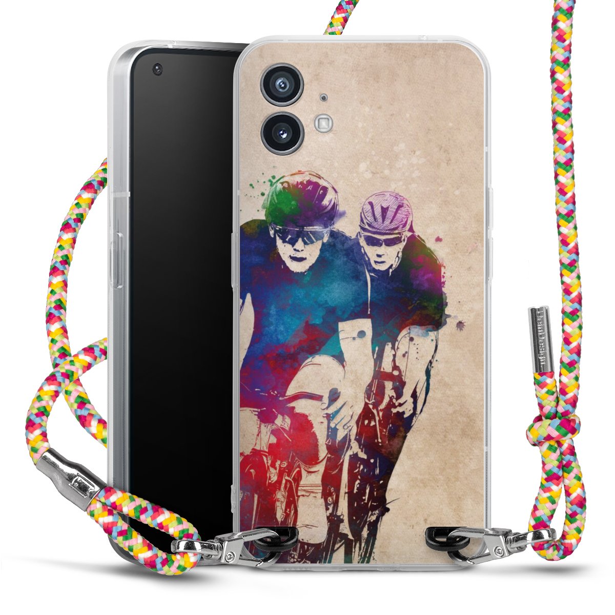 The flexible case is made from a highquality TPU material (thermoplastic Polyurethan). Thanks to its longlasting and break resistant characterisitcs, the case is flexible yet consistent in form and has a great grip and feel. The textile strap made from Polyester gives a chic yet casual accent allowing you to carry your phone like a bag or necklace - a practical gadget perfect for your next adventure. The textile strap is about 1.70 meters long and the length can easily be adjusted through the knots. Our Carry Case is available in Colourful, Mint-Camouflage, Very-Berry, Sahara-Sand and Sparkling-Neon. The ends of the textile strap are covered with metallic end caps to protect them against fraying.