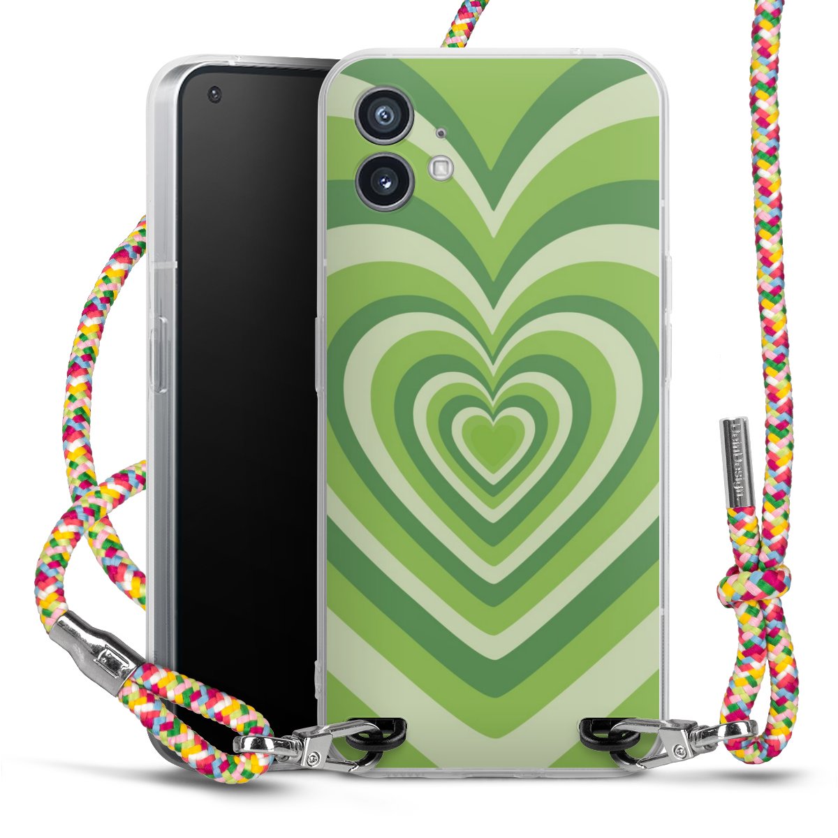 The flexible case is made from a highquality TPU material (thermoplastic Polyurethan). Thanks to its longlasting and break resistant characterisitcs, the case is flexible yet consistent in form and has a great grip and feel. The textile strap made from Polyester gives a chic yet casual accent allowing you to carry your phone like a bag or necklace - a practical gadget perfect for your next adventure. The textile strap is about 1.70 meters long and the length can easily be adjusted through the knots. Our Carry Case is available in Colourful, Mint-Camouflage, Very-Berry, Sahara-Sand and Sparkling-Neon. The ends of the textile strap are covered with metallic end caps to protect them against fraying.