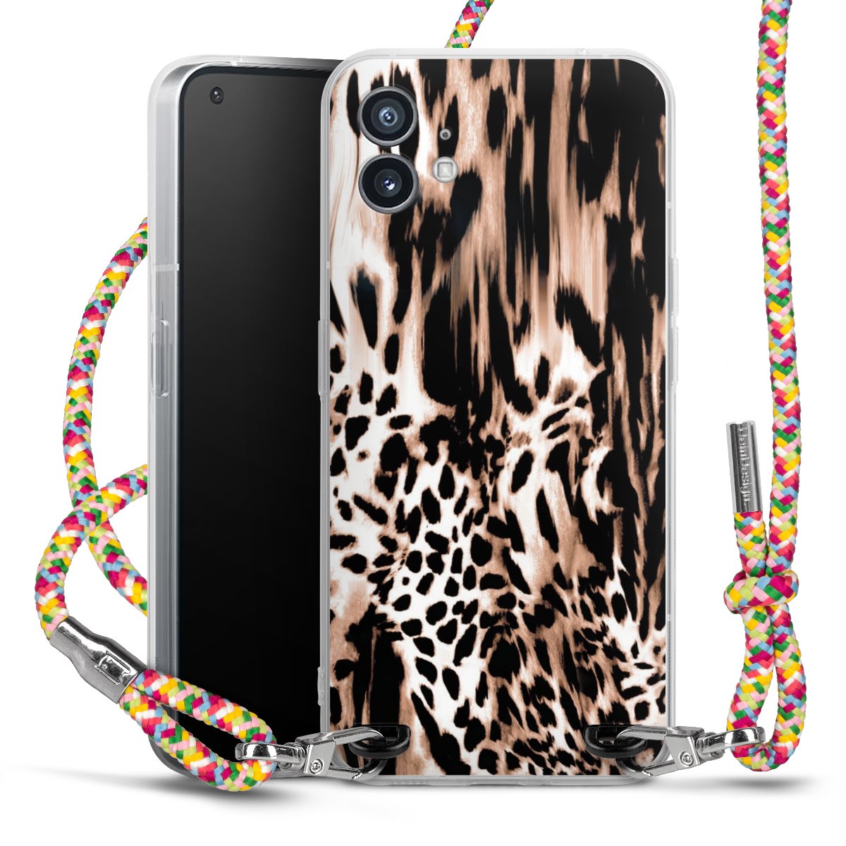 The flexible case is made from a highquality TPU material (thermoplastic Polyurethan). Thanks to its longlasting and break resistant characterisitcs, the case is flexible yet consistent in form and has a great grip and feel. The textile strap made from Polyester gives a chic yet casual accent allowing you to carry your phone like a bag or necklace - a practical gadget perfect for your next adventure. The textile strap is about 1.70 meters long and the length can easily be adjusted through the knots. Our Carry Case is available in Colourful, Mint-Camouflage, Very-Berry, Sahara-Sand and Sparkling-Neon. The ends of the textile strap are covered with metallic end caps to protect them against fraying.