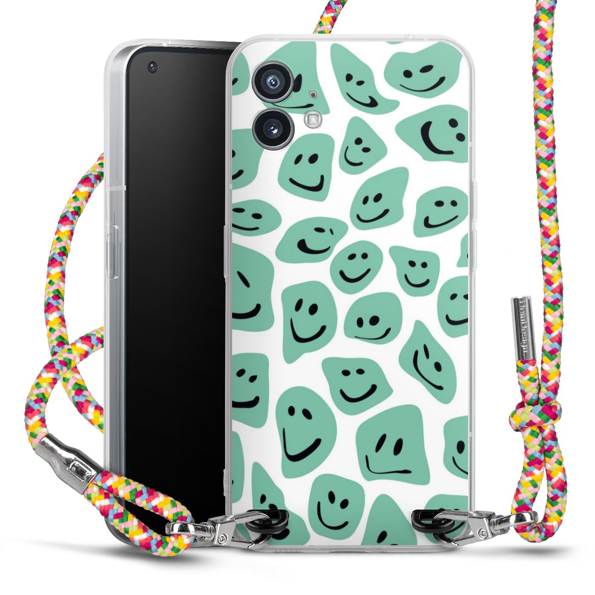 The flexible case is made from a highquality TPU material (thermoplastic Polyurethan). Thanks to its longlasting and break resistant characterisitcs, the case is flexible yet consistent in form and has a great grip and feel. The textile strap made from Polyester gives a chic yet casual accent allowing you to carry your phone like a bag or necklace - a practical gadget perfect for your next adventure. The textile strap is about 1.70 meters long and the length can easily be adjusted through the knots. Our Carry Case is available in Colourful, Mint-Camouflage, Very-Berry, Sahara-Sand and Sparkling-Neon. The ends of the textile strap are covered with metallic end caps to protect them against fraying.