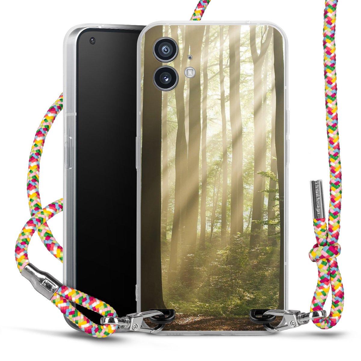 The flexible case is made from a highquality TPU material (thermoplastic Polyurethan). Thanks to its longlasting and break resistant characterisitcs, the case is flexible yet consistent in form and has a great grip and feel. The textile strap made from Polyester gives a chic yet casual accent allowing you to carry your phone like a bag or necklace - a practical gadget perfect for your next adventure. The textile strap is about 1.70 meters long and the length can easily be adjusted through the knots. Our Carry Case is available in Colourful, Mint-Camouflage, Very-Berry, Sahara-Sand and Sparkling-Neon. The ends of the textile strap are covered with metallic end caps to protect them against fraying.