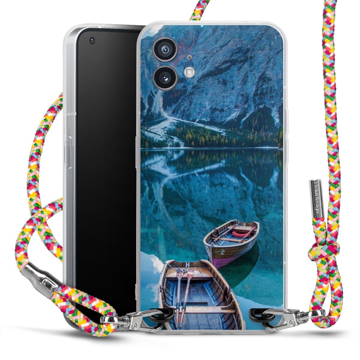 The flexible case is made from a highquality TPU material (thermoplastic Polyurethan). Thanks to its longlasting and break resistant characterisitcs, the case is flexible yet consistent in form and has a great grip and feel. The textile strap made from Polyester gives a chic yet casual accent allowing you to carry your phone like a bag or necklace - a practical gadget perfect for your next adventure. The textile strap is about 1.70 meters long and the length can easily be adjusted through the knots. Our Carry Case is available in Colourful, Mint-Camouflage, Very-Berry, Sahara-Sand and Sparkling-Neon. The ends of the textile strap are covered with metallic end caps to protect them against fraying.