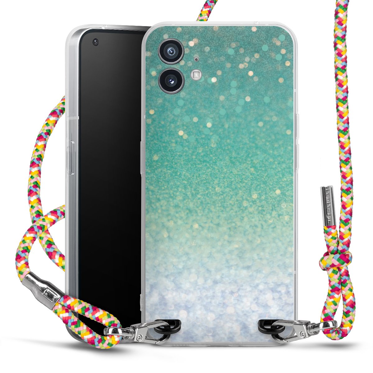 The flexible case is made from a highquality TPU material (thermoplastic Polyurethan). Thanks to its longlasting and break resistant characterisitcs, the case is flexible yet consistent in form and has a great grip and feel. The textile strap made from Polyester gives a chic yet casual accent allowing you to carry your phone like a bag or necklace - a practical gadget perfect for your next adventure. The textile strap is about 1.70 meters long and the length can easily be adjusted through the knots. Our Carry Case is available in Colourful, Mint-Camouflage, Very-Berry, Sahara-Sand and Sparkling-Neon. The ends of the textile strap are covered with metallic end caps to protect them against fraying.