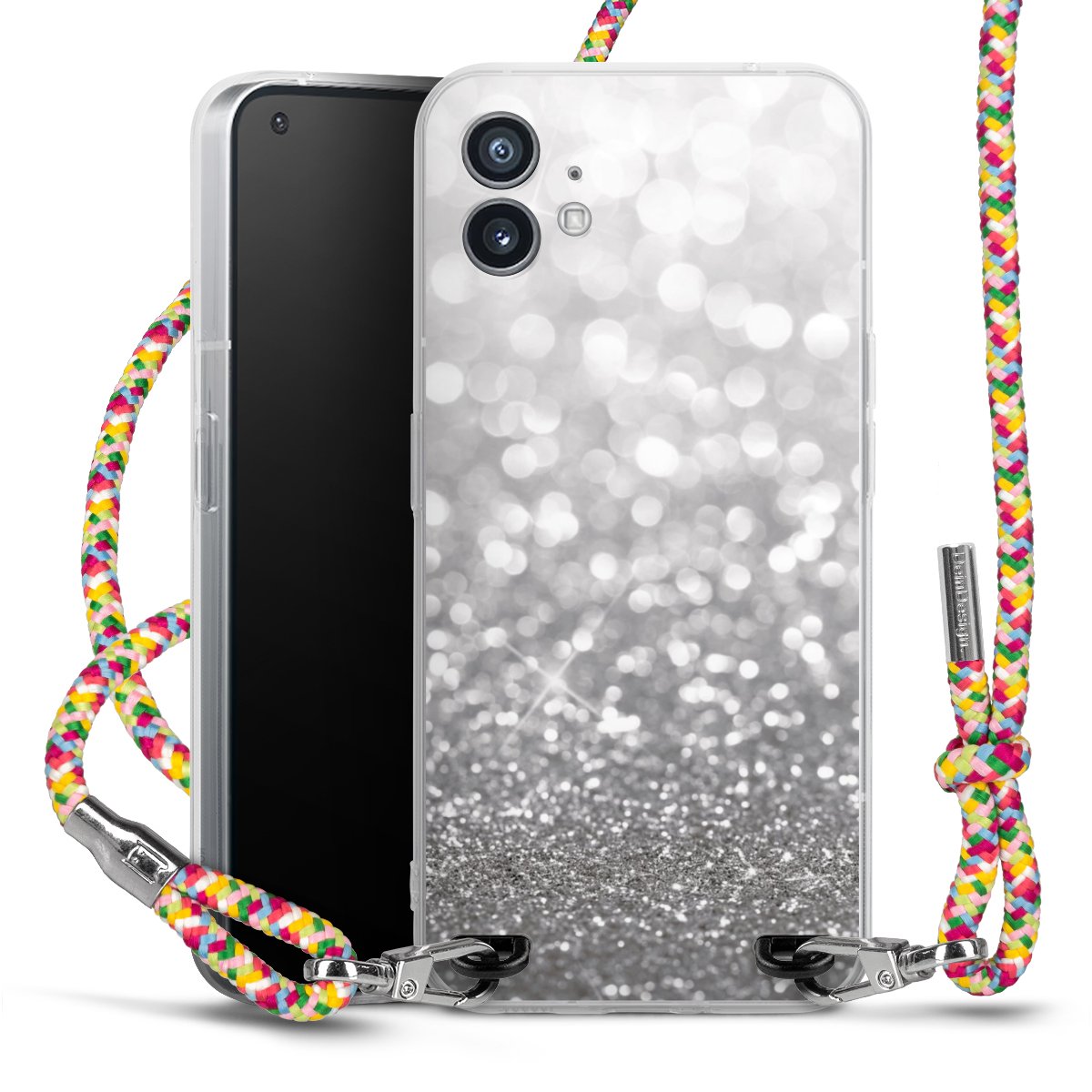 The flexible case is made from a highquality TPU material (thermoplastic Polyurethan). Thanks to its longlasting and break resistant characterisitcs, the case is flexible yet consistent in form and has a great grip and feel. The textile strap made from Polyester gives a chic yet casual accent allowing you to carry your phone like a bag or necklace - a practical gadget perfect for your next adventure. The textile strap is about 1.70 meters long and the length can easily be adjusted through the knots. Our Carry Case is available in Colourful, Mint-Camouflage, Very-Berry, Sahara-Sand and Sparkling-Neon. The ends of the textile strap are covered with metallic end caps to protect them against fraying.