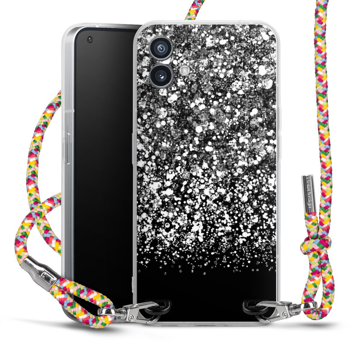 The flexible case is made from a highquality TPU material (thermoplastic Polyurethan). Thanks to its longlasting and break resistant characterisitcs, the case is flexible yet consistent in form and has a great grip and feel. The textile strap made from Polyester gives a chic yet casual accent allowing you to carry your phone like a bag or necklace - a practical gadget perfect for your next adventure. The textile strap is about 1.70 meters long and the length can easily be adjusted through the knots. Our Carry Case is available in Colourful, Mint-Camouflage, Very-Berry, Sahara-Sand and Sparkling-Neon. The ends of the textile strap are covered with metallic end caps to protect them against fraying.