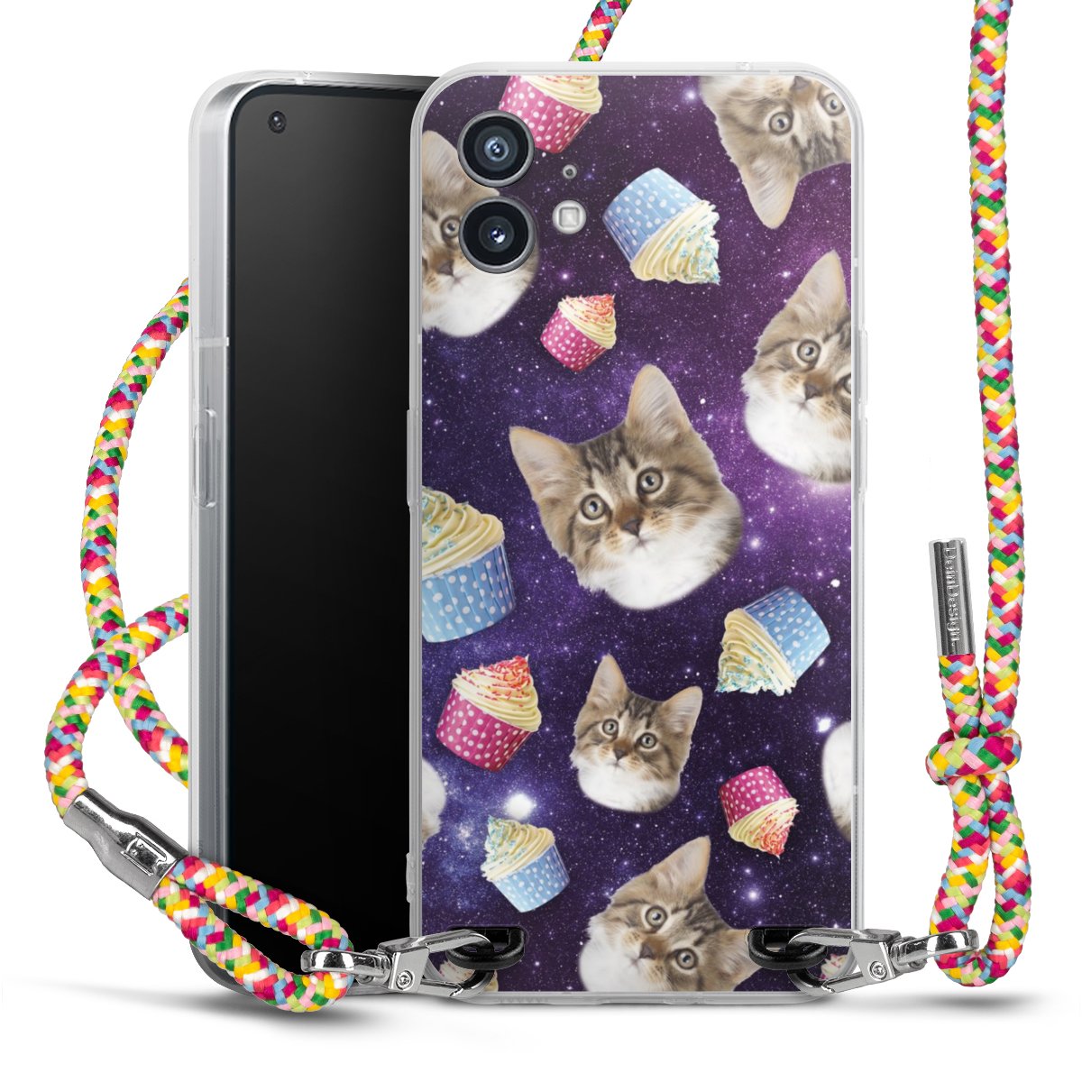 The flexible case is made from a highquality TPU material (thermoplastic Polyurethan). Thanks to its longlasting and break resistant characterisitcs, the case is flexible yet consistent in form and has a great grip and feel. The textile strap made from Polyester gives a chic yet casual accent allowing you to carry your phone like a bag or necklace - a practical gadget perfect for your next adventure. The textile strap is about 1.70 meters long and the length can easily be adjusted through the knots. Our Carry Case is available in Colourful, Mint-Camouflage, Very-Berry, Sahara-Sand and Sparkling-Neon. The ends of the textile strap are covered with metallic end caps to protect them against fraying.