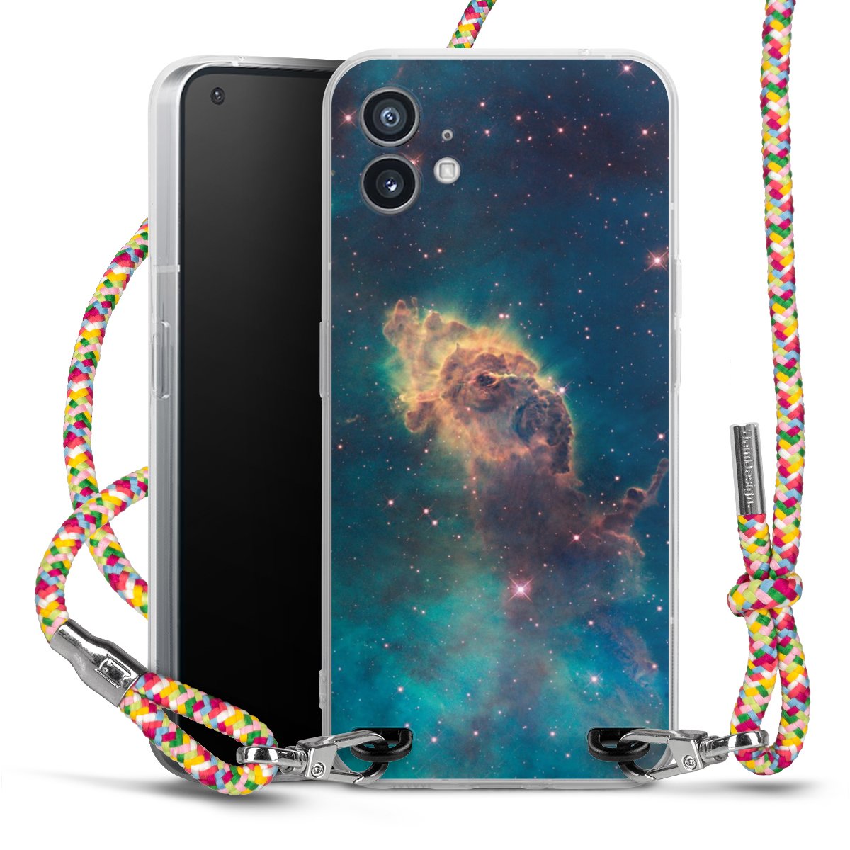 The flexible case is made from a highquality TPU material (thermoplastic Polyurethan). Thanks to its longlasting and break resistant characterisitcs, the case is flexible yet consistent in form and has a great grip and feel. The textile strap made from Polyester gives a chic yet casual accent allowing you to carry your phone like a bag or necklace - a practical gadget perfect for your next adventure. The textile strap is about 1.70 meters long and the length can easily be adjusted through the knots. Our Carry Case is available in Colourful, Mint-Camouflage, Very-Berry, Sahara-Sand and Sparkling-Neon. The ends of the textile strap are covered with metallic end caps to protect them against fraying.