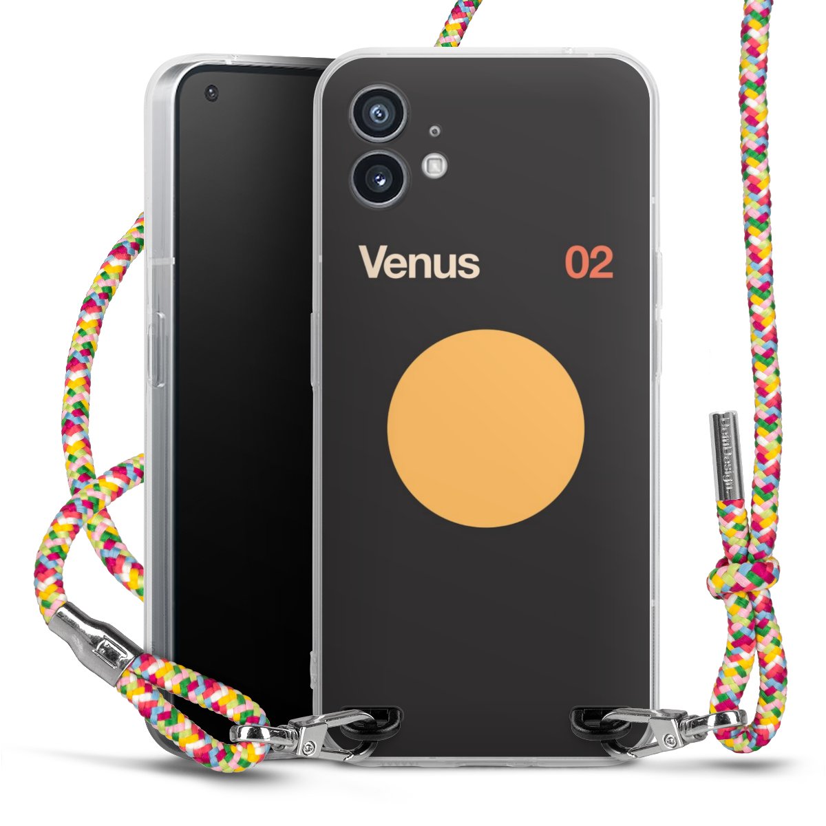 The flexible case is made from a highquality TPU material (thermoplastic Polyurethan). Thanks to its longlasting and break resistant characterisitcs, the case is flexible yet consistent in form and has a great grip and feel. The textile strap made from Polyester gives a chic yet casual accent allowing you to carry your phone like a bag or necklace - a practical gadget perfect for your next adventure. The textile strap is about 1.70 meters long and the length can easily be adjusted through the knots. Our Carry Case is available in Colourful, Mint-Camouflage, Very-Berry, Sahara-Sand and Sparkling-Neon. The ends of the textile strap are covered with metallic end caps to protect them against fraying.