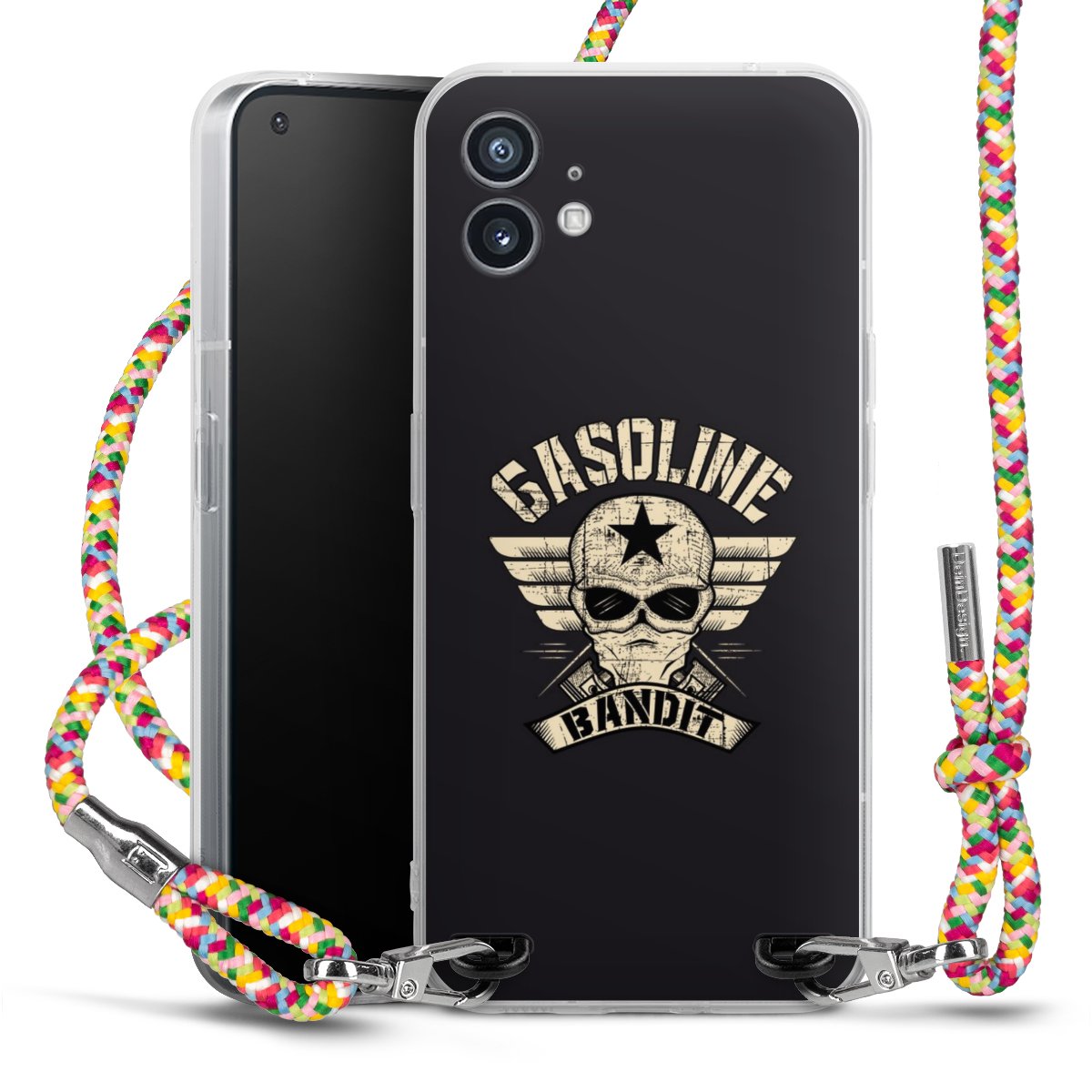 The flexible case is made from a highquality TPU material (thermoplastic Polyurethan). Thanks to its longlasting and break resistant characterisitcs, the case is flexible yet consistent in form and has a great grip and feel. The textile strap made from Polyester gives a chic yet casual accent allowing you to carry your phone like a bag or necklace - a practical gadget perfect for your next adventure. The textile strap is about 1.70 meters long and the length can easily be adjusted through the knots. Our Carry Case is available in Colourful, Mint-Camouflage, Very-Berry, Sahara-Sand and Sparkling-Neon. The ends of the textile strap are covered with metallic end caps to protect them against fraying.