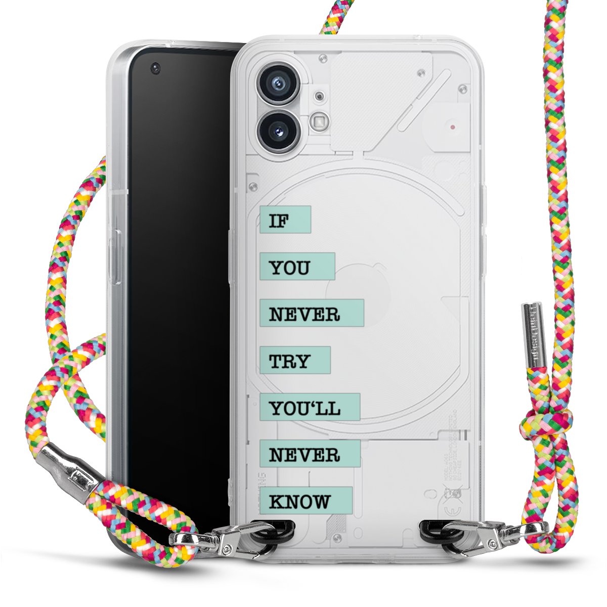 The flexible case is made from a highquality TPU material (thermoplastic Polyurethan). Thanks to its longlasting and break resistant characterisitcs, the case is flexible yet consistent in form and has a great grip and feel. The textile strap made from Polyester gives a chic yet casual accent allowing you to carry your phone like a bag or necklace - a practical gadget perfect for your next adventure. The textile strap is about 1.70 meters long and the length can easily be adjusted through the knots. Our Carry Case is available in Colourful, Mint-Camouflage, Very-Berry, Sahara-Sand and Sparkling-Neon. The ends of the textile strap are covered with metallic end caps to protect them against fraying.