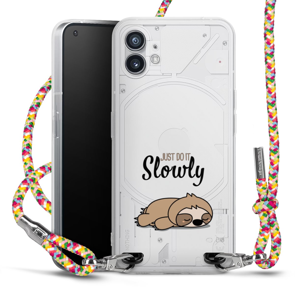 The flexible case is made from a highquality TPU material (thermoplastic Polyurethan). Thanks to its longlasting and break resistant characterisitcs, the case is flexible yet consistent in form and has a great grip and feel. The textile strap made from Polyester gives a chic yet casual accent allowing you to carry your phone like a bag or necklace - a practical gadget perfect for your next adventure. The textile strap is about 1.70 meters long and the length can easily be adjusted through the knots. Our Carry Case is available in Colourful, Mint-Camouflage, Very-Berry, Sahara-Sand and Sparkling-Neon. The ends of the textile strap are covered with metallic end caps to protect them against fraying.