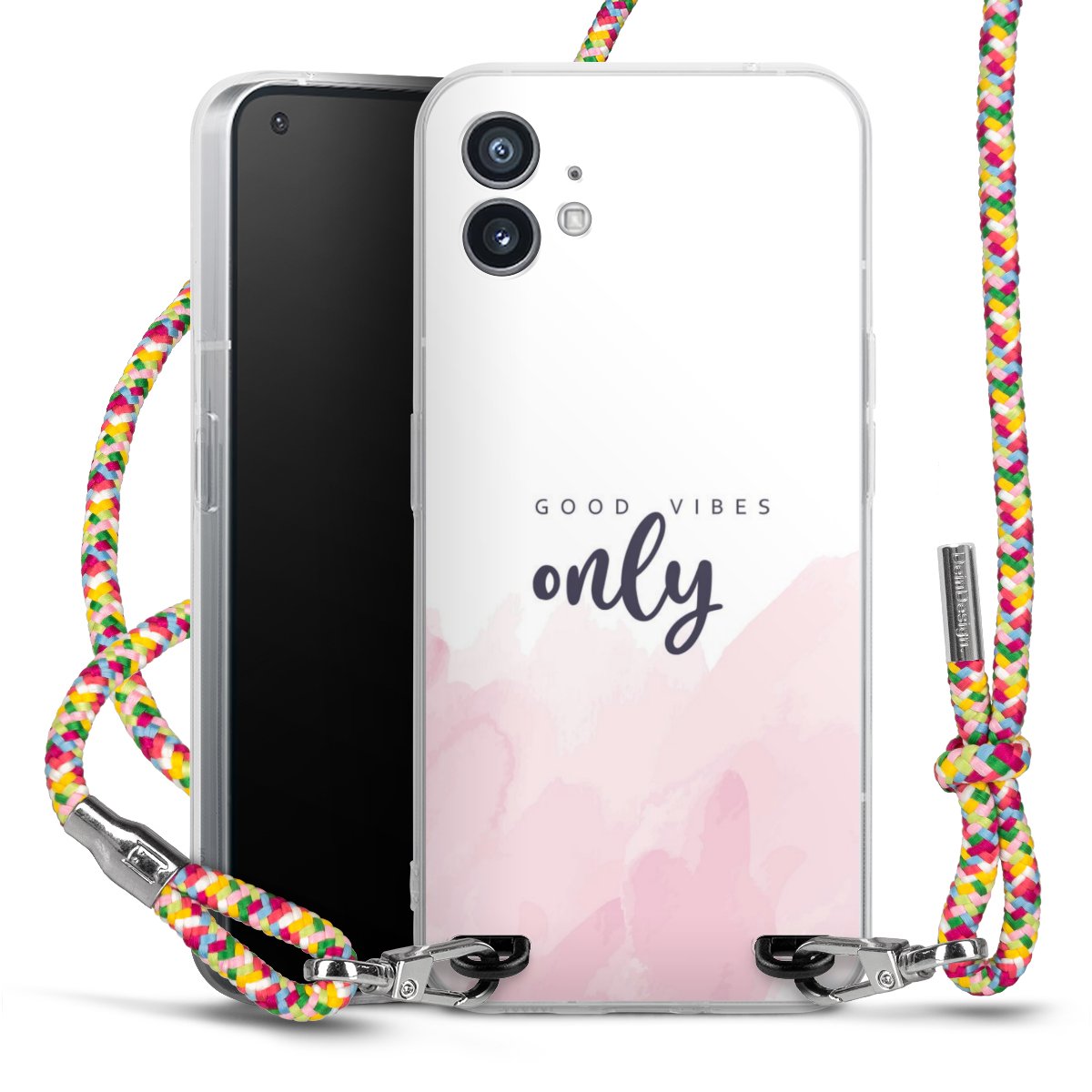 The flexible case is made from a highquality TPU material (thermoplastic Polyurethan). Thanks to its longlasting and break resistant characterisitcs, the case is flexible yet consistent in form and has a great grip and feel. The textile strap made from Polyester gives a chic yet casual accent allowing you to carry your phone like a bag or necklace - a practical gadget perfect for your next adventure. The textile strap is about 1.70 meters long and the length can easily be adjusted through the knots. Our Carry Case is available in Colourful, Mint-Camouflage, Very-Berry, Sahara-Sand and Sparkling-Neon. The ends of the textile strap are covered with metallic end caps to protect them against fraying.