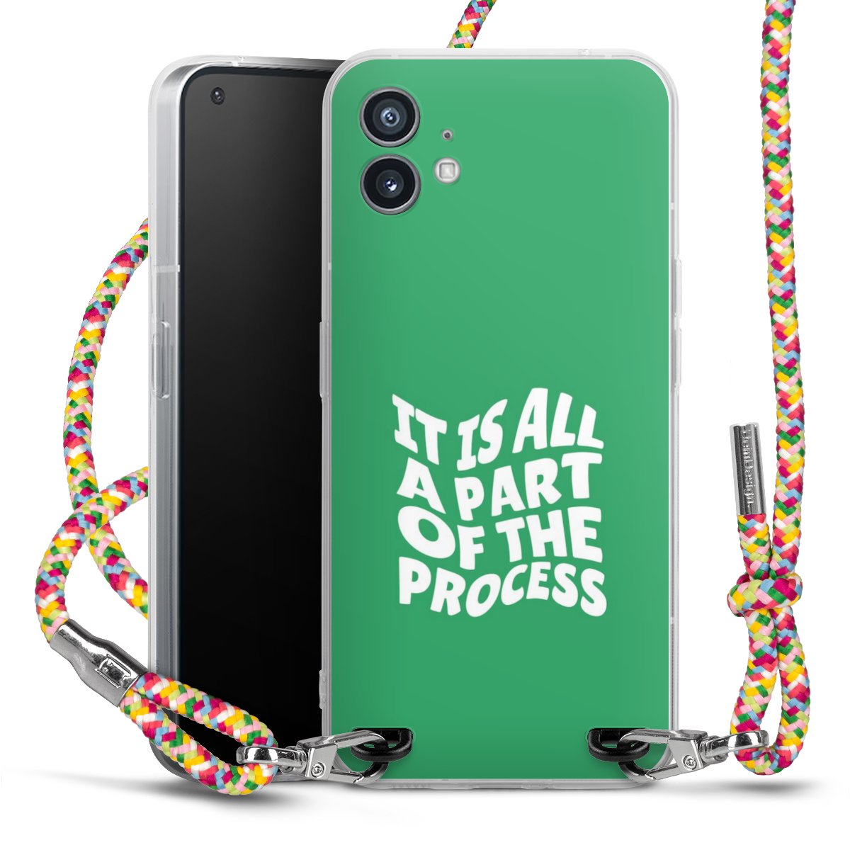 The flexible case is made from a highquality TPU material (thermoplastic Polyurethan). Thanks to its longlasting and break resistant characterisitcs, the case is flexible yet consistent in form and has a great grip and feel. The textile strap made from Polyester gives a chic yet casual accent allowing you to carry your phone like a bag or necklace - a practical gadget perfect for your next adventure. The textile strap is about 1.70 meters long and the length can easily be adjusted through the knots. Our Carry Case is available in Colourful, Mint-Camouflage, Very-Berry, Sahara-Sand and Sparkling-Neon. The ends of the textile strap are covered with metallic end caps to protect them against fraying.