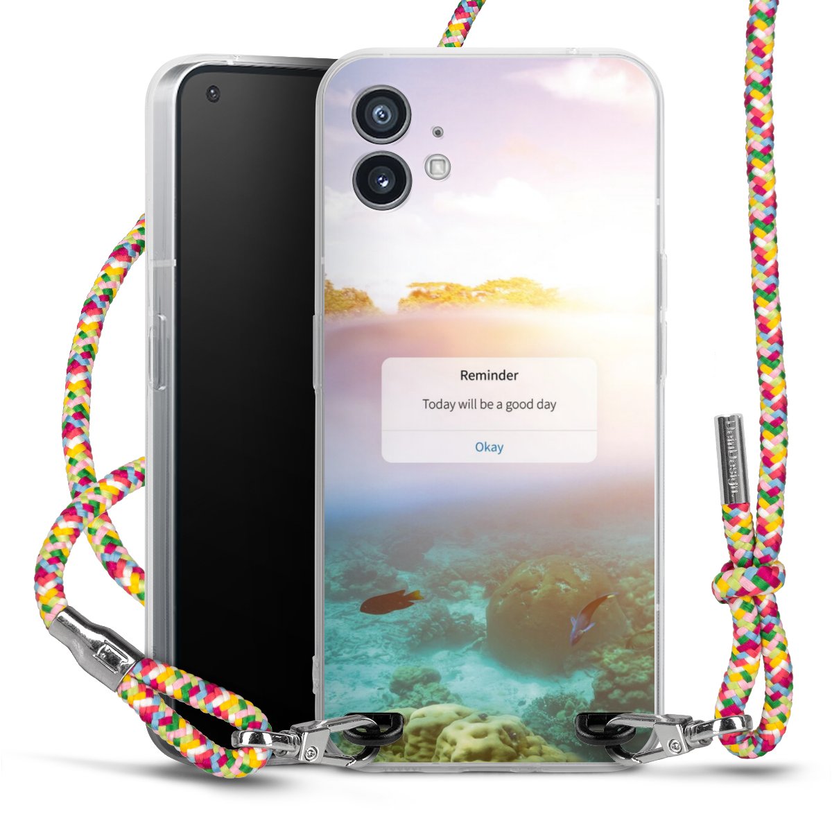 The flexible case is made from a highquality TPU material (thermoplastic Polyurethan). Thanks to its longlasting and break resistant characterisitcs, the case is flexible yet consistent in form and has a great grip and feel. The textile strap made from Polyester gives a chic yet casual accent allowing you to carry your phone like a bag or necklace - a practical gadget perfect for your next adventure. The textile strap is about 1.70 meters long and the length can easily be adjusted through the knots. Our Carry Case is available in Colourful, Mint-Camouflage, Very-Berry, Sahara-Sand and Sparkling-Neon. The ends of the textile strap are covered with metallic end caps to protect them against fraying.