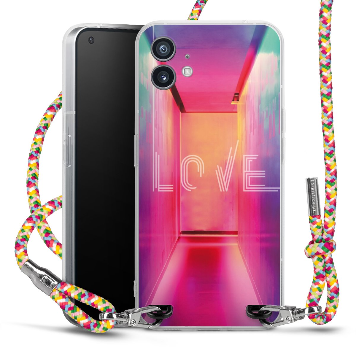 The flexible case is made from a highquality TPU material (thermoplastic Polyurethan). Thanks to its longlasting and break resistant characterisitcs, the case is flexible yet consistent in form and has a great grip and feel. The textile strap made from Polyester gives a chic yet casual accent allowing you to carry your phone like a bag or necklace - a practical gadget perfect for your next adventure. The textile strap is about 1.70 meters long and the length can easily be adjusted through the knots. Our Carry Case is available in Colourful, Mint-Camouflage, Very-Berry, Sahara-Sand and Sparkling-Neon. The ends of the textile strap are covered with metallic end caps to protect them against fraying.