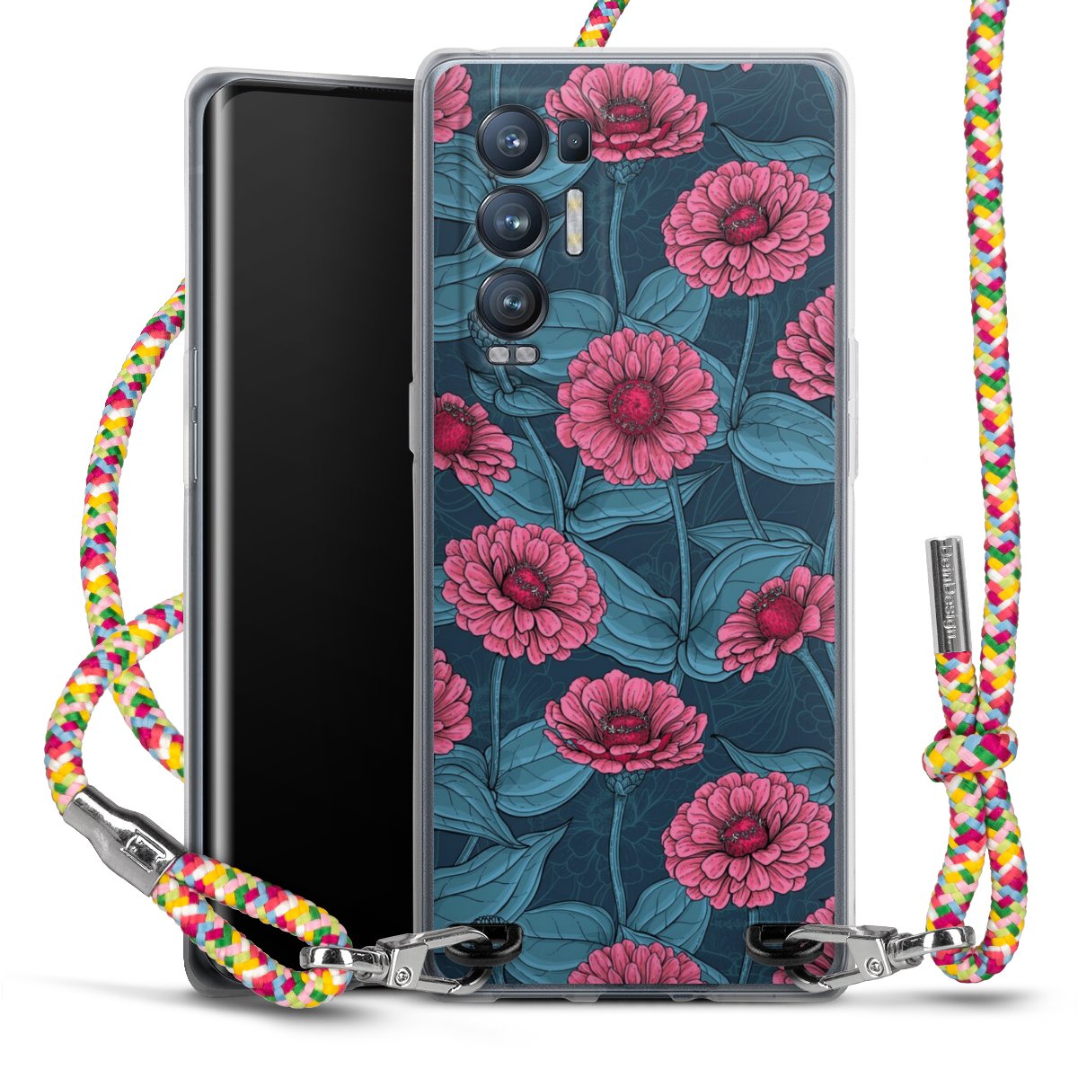 The flexible case is made from a highquality TPU material (thermoplastic Polyurethan). Thanks to its longlasting and break resistant characterisitcs, the case is flexible yet consistent in form and has a great grip and feel. The textile strap made from Polyester gives a chic yet casual accent allowing you to carry your phone like a bag or necklace - a practical gadget perfect for your next adventure. The textile strap is about 1.70 meters long and the length can easily be adjusted through the knots. Our Carry Case is available in Colourful, Mint-Camouflage, Very-Berry, Sahara-Sand and Sparkling-Neon. The ends of the textile strap are covered with metallic end caps to protect them against fraying.