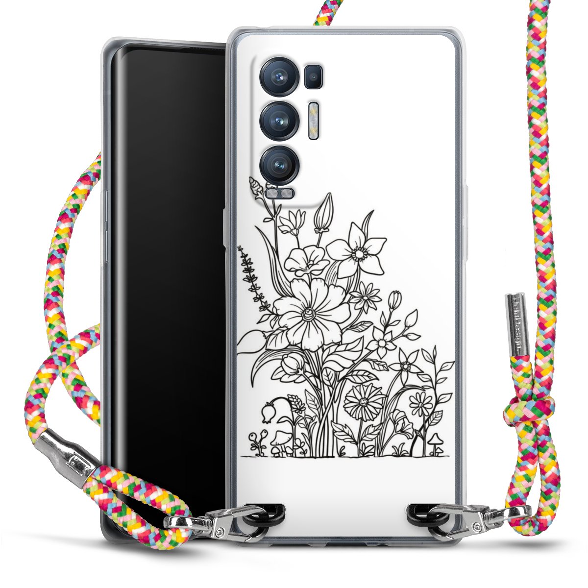 The flexible case is made from a highquality TPU material (thermoplastic Polyurethan). Thanks to its longlasting and break resistant characterisitcs, the case is flexible yet consistent in form and has a great grip and feel. The textile strap made from Polyester gives a chic yet casual accent allowing you to carry your phone like a bag or necklace - a practical gadget perfect for your next adventure. The textile strap is about 1.70 meters long and the length can easily be adjusted through the knots. Our Carry Case is available in Colourful, Mint-Camouflage, Very-Berry, Sahara-Sand and Sparkling-Neon. The ends of the textile strap are covered with metallic end caps to protect them against fraying.