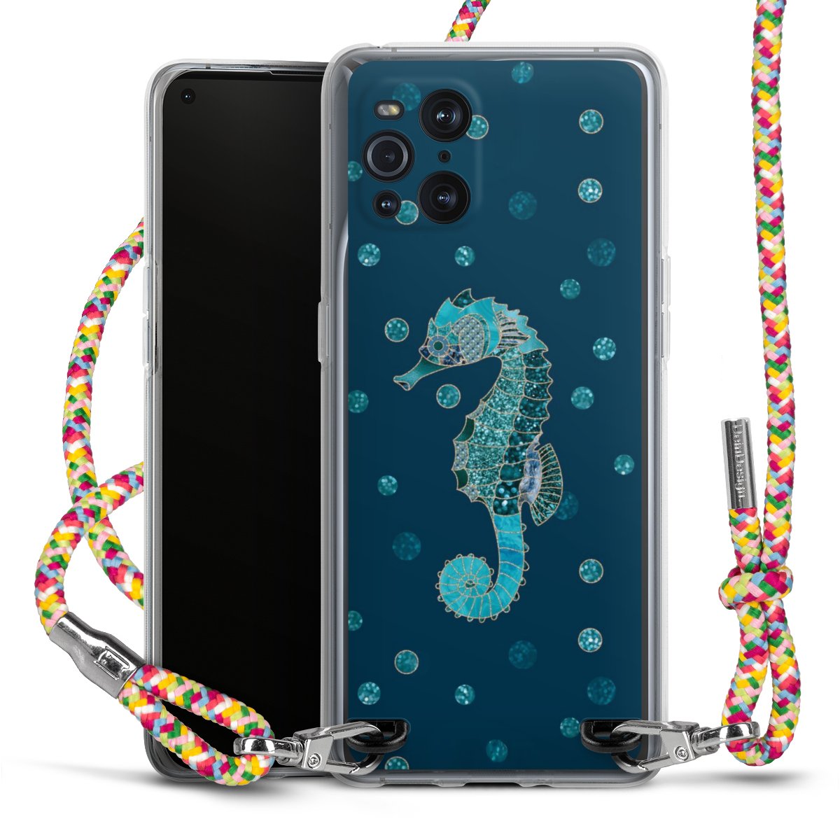 The flexible case is made from a highquality TPU material (thermoplastic Polyurethan). Thanks to its longlasting and break resistant characterisitcs, the case is flexible yet consistent in form and has a great grip and feel. The textile strap made from Polyester gives a chic yet casual accent allowing you to carry your phone like a bag or necklace - a practical gadget perfect for your next adventure. The textile strap is about 1.70 meters long and the length can easily be adjusted through the knots. Our Carry Case is available in Colourful, Mint-Camouflage, Very-Berry, Sahara-Sand and Sparkling-Neon. The ends of the textile strap are covered with metallic end caps to protect them against fraying.