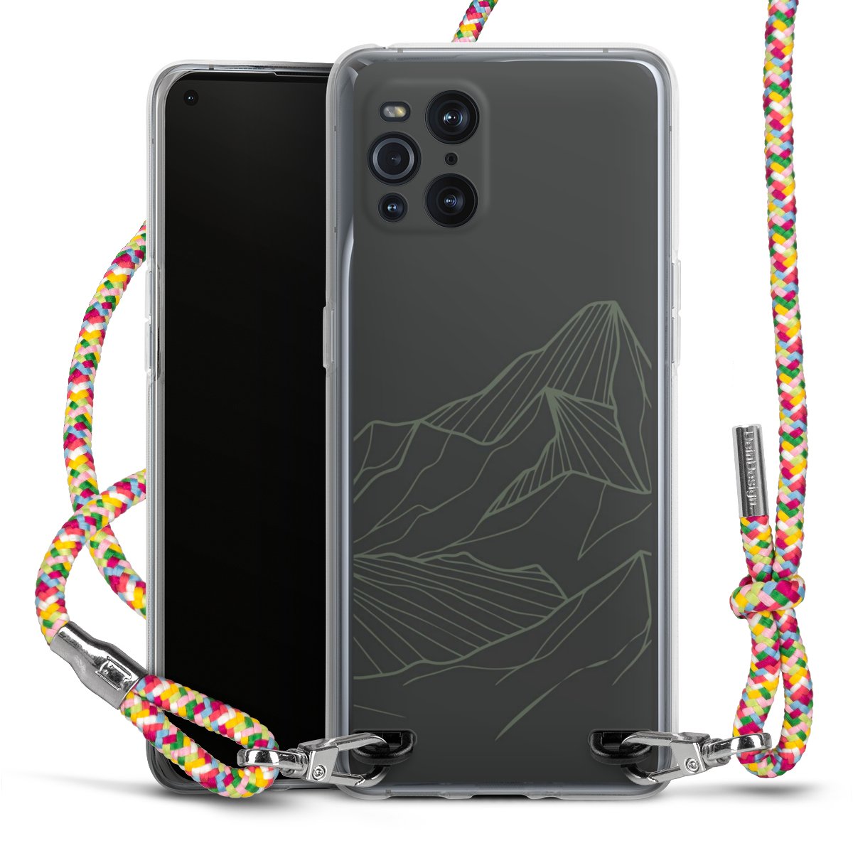 The flexible case is made from a highquality TPU material (thermoplastic Polyurethan). Thanks to its longlasting and break resistant characterisitcs, the case is flexible yet consistent in form and has a great grip and feel. The textile strap made from Polyester gives a chic yet casual accent allowing you to carry your phone like a bag or necklace - a practical gadget perfect for your next adventure. The textile strap is about 1.70 meters long and the length can easily be adjusted through the knots. Our Carry Case is available in Colourful, Mint-Camouflage, Very-Berry, Sahara-Sand and Sparkling-Neon. The ends of the textile strap are covered with metallic end caps to protect them against fraying.