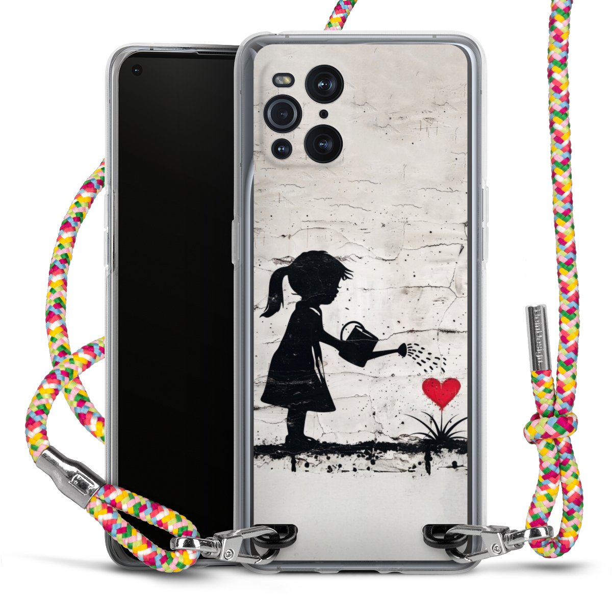 The flexible case is made from a highquality TPU material (thermoplastic Polyurethan). Thanks to its longlasting and break resistant characterisitcs, the case is flexible yet consistent in form and has a great grip and feel. The textile strap made from Polyester gives a chic yet casual accent allowing you to carry your phone like a bag or necklace - a practical gadget perfect for your next adventure. The textile strap is about 1.70 meters long and the length can easily be adjusted through the knots. Our Carry Case is available in Colourful, Mint-Camouflage, Very-Berry, Sahara-Sand and Sparkling-Neon. The ends of the textile strap are covered with metallic end caps to protect them against fraying.