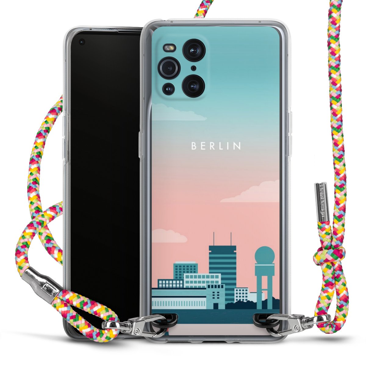 The flexible case is made from a highquality TPU material (thermoplastic Polyurethan). Thanks to its longlasting and break resistant characterisitcs, the case is flexible yet consistent in form and has a great grip and feel. The textile strap made from Polyester gives a chic yet casual accent allowing you to carry your phone like a bag or necklace - a practical gadget perfect for your next adventure. The textile strap is about 1.70 meters long and the length can easily be adjusted through the knots. Our Carry Case is available in Colourful, Mint-Camouflage, Very-Berry, Sahara-Sand and Sparkling-Neon. The ends of the textile strap are covered with metallic end caps to protect them against fraying.