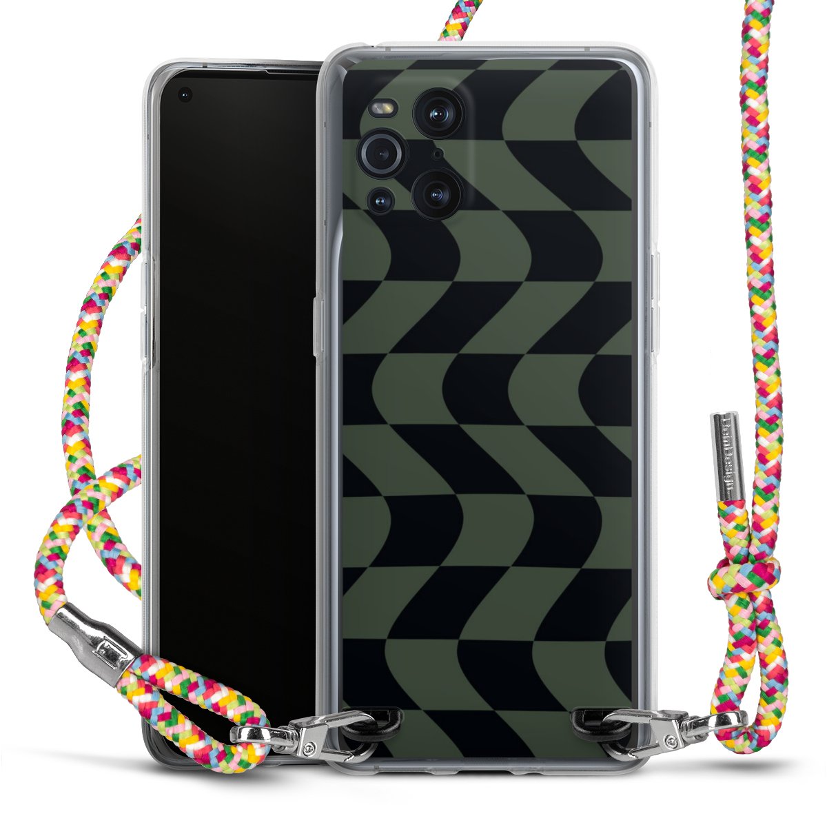 The flexible case is made from a highquality TPU material (thermoplastic Polyurethan). Thanks to its longlasting and break resistant characterisitcs, the case is flexible yet consistent in form and has a great grip and feel. The textile strap made from Polyester gives a chic yet casual accent allowing you to carry your phone like a bag or necklace - a practical gadget perfect for your next adventure. The textile strap is about 1.70 meters long and the length can easily be adjusted through the knots. Our Carry Case is available in Colourful, Mint-Camouflage, Very-Berry, Sahara-Sand and Sparkling-Neon. The ends of the textile strap are covered with metallic end caps to protect them against fraying.