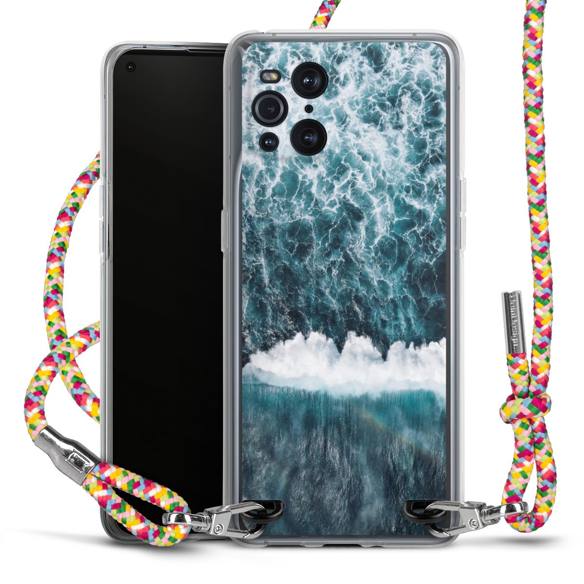 The flexible case is made from a highquality TPU material (thermoplastic Polyurethan). Thanks to its longlasting and break resistant characterisitcs, the case is flexible yet consistent in form and has a great grip and feel. The textile strap made from Polyester gives a chic yet casual accent allowing you to carry your phone like a bag or necklace - a practical gadget perfect for your next adventure. The textile strap is about 1.70 meters long and the length can easily be adjusted through the knots. Our Carry Case is available in Colourful, Mint-Camouflage, Very-Berry, Sahara-Sand and Sparkling-Neon. The ends of the textile strap are covered with metallic end caps to protect them against fraying.