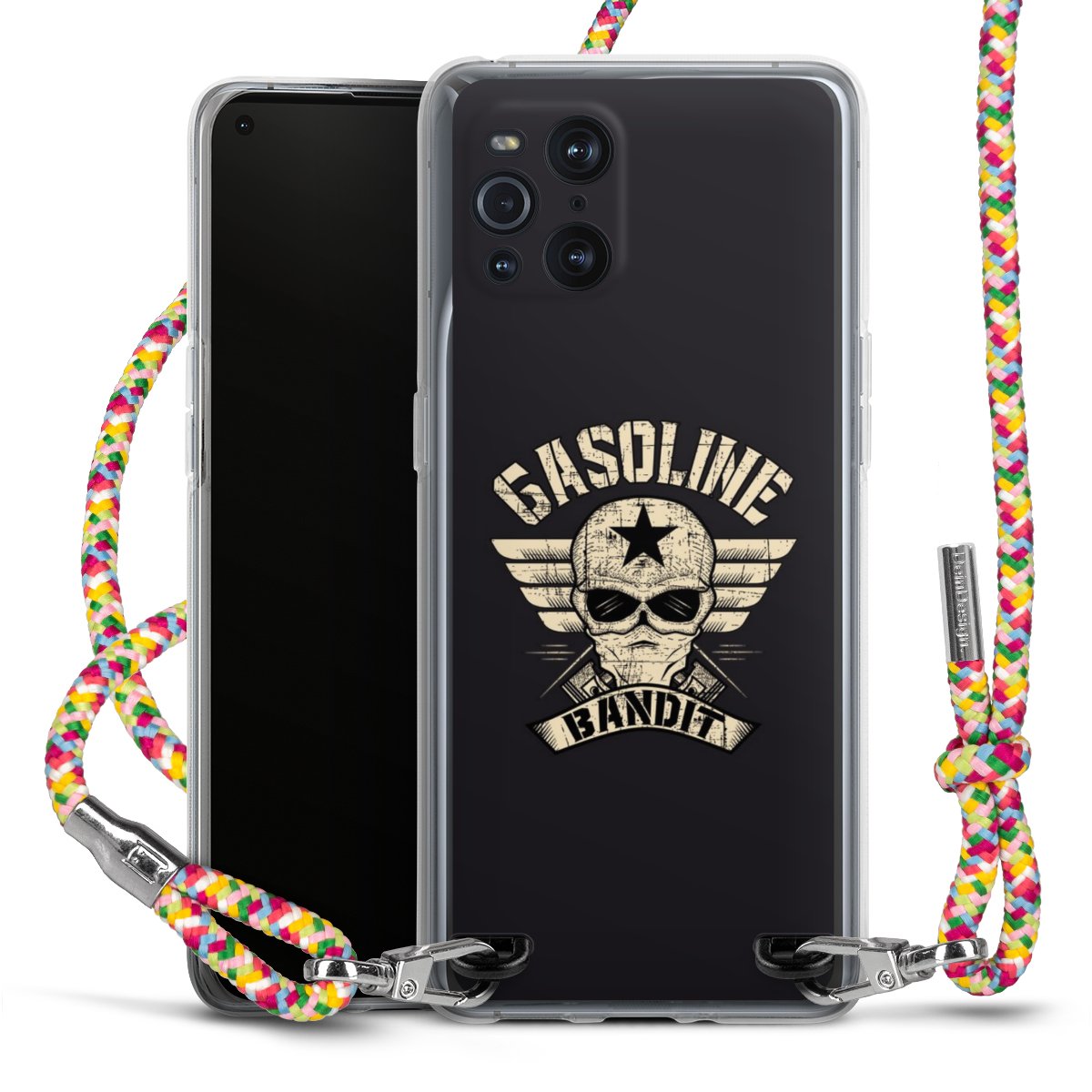 The flexible case is made from a highquality TPU material (thermoplastic Polyurethan). Thanks to its longlasting and break resistant characterisitcs, the case is flexible yet consistent in form and has a great grip and feel. The textile strap made from Polyester gives a chic yet casual accent allowing you to carry your phone like a bag or necklace - a practical gadget perfect for your next adventure. The textile strap is about 1.70 meters long and the length can easily be adjusted through the knots. Our Carry Case is available in Colourful, Mint-Camouflage, Very-Berry, Sahara-Sand and Sparkling-Neon. The ends of the textile strap are covered with metallic end caps to protect them against fraying.