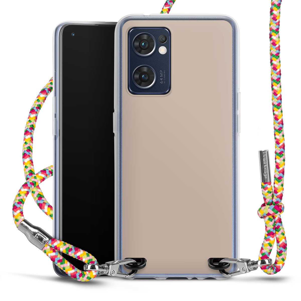 The flexible case is made from a highquality TPU material (thermoplastic Polyurethan). Thanks to its longlasting and break resistant characterisitcs, the case is flexible yet consistent in form and has a great grip and feel. The textile strap made from Polyester gives a chic yet casual accent allowing you to carry your phone like a bag or necklace - a practical gadget perfect for your next adventure. The textile strap is about 1.70 meters long and the length can easily be adjusted through the knots. Our Carry Case is available in Colourful, Mint-Camouflage, Very-Berry, Sahara-Sand and Sparkling-Neon. The ends of the textile strap are covered with metallic end caps to protect them against fraying.