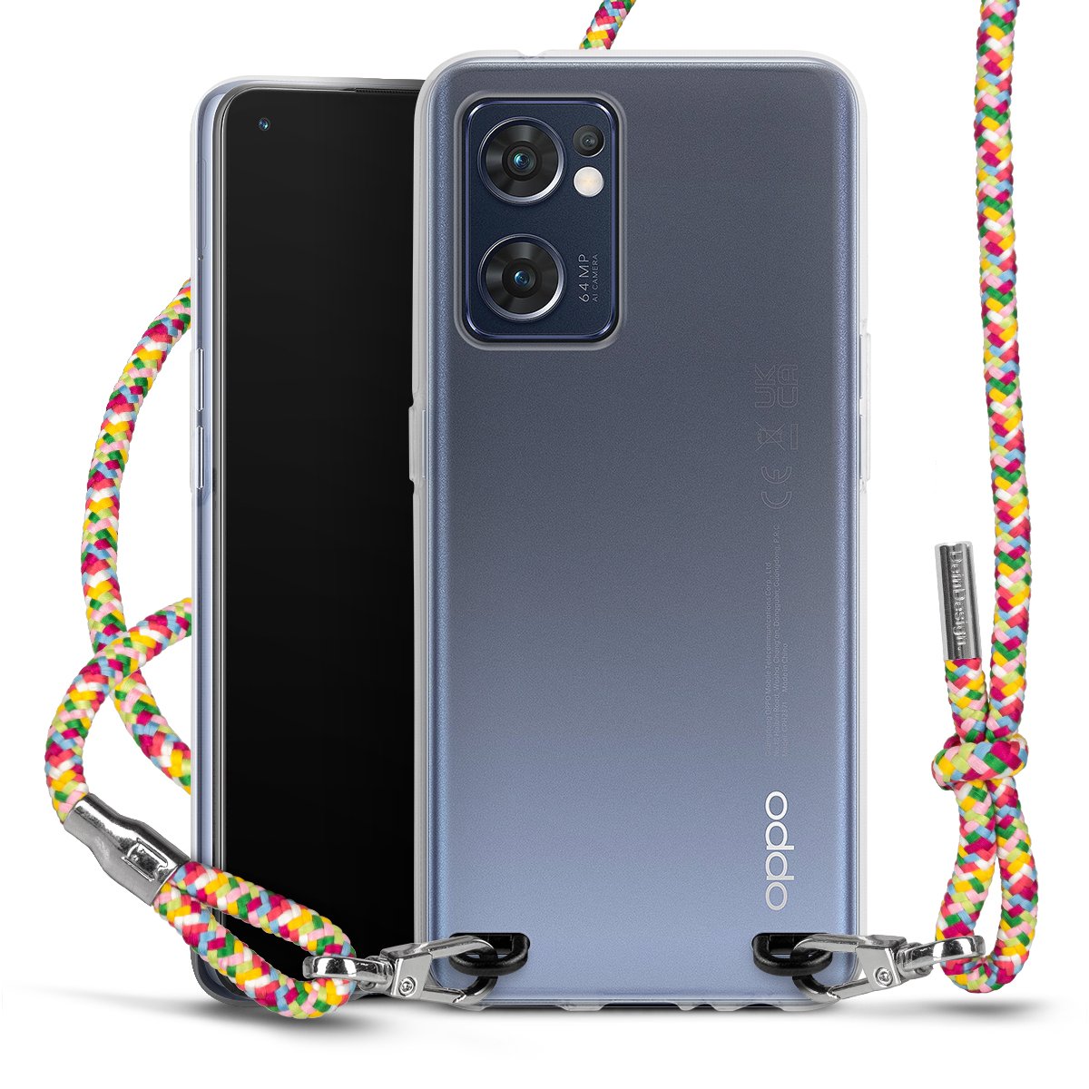 The flexible case is made from a highquality TPU material (thermoplastic Polyurethan). Thanks to its longlasting and break resistant characterisitcs, the case is flexible yet consistent in form and has a great grip and feel. The textile strap made from Polyester gives a chic yet casual accent allowing you to carry your phone like a bag or necklace - a practical gadget perfect for your next adventure. The textile strap is about 1.70 meters long and the length can easily be adjusted through the knots. Our Carry Case is available in Colourful, Mint-Camouflage, Very-Berry, Sahara-Sand and Sparkling-Neon. The ends of the textile strap are covered with metallic end caps to protect them against fraying.