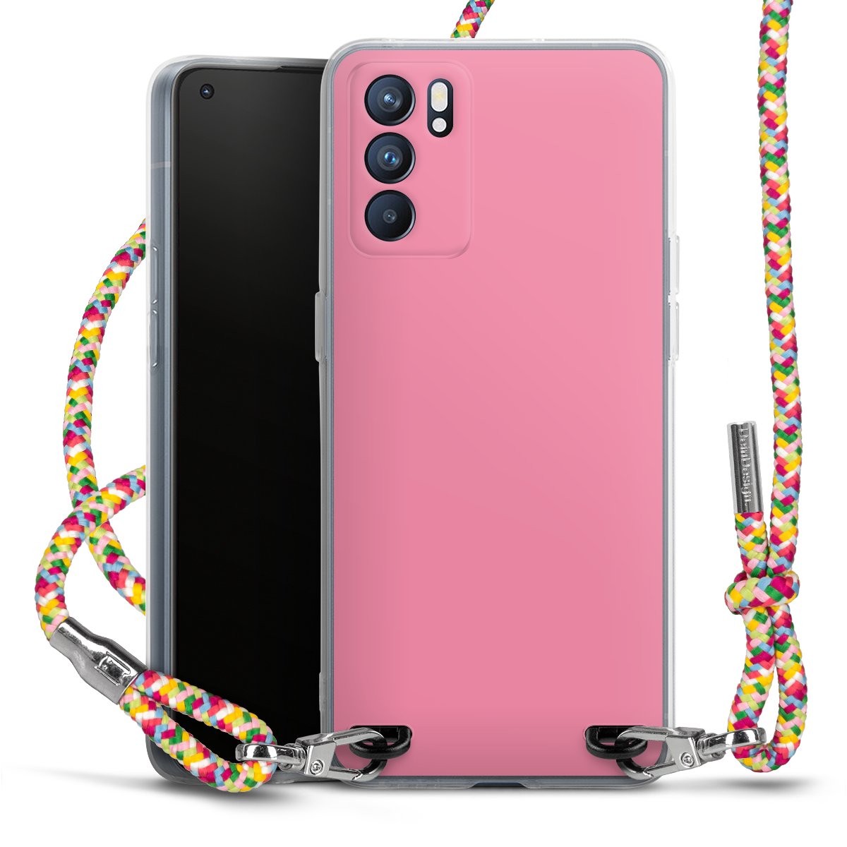 The flexible case is made from a highquality TPU material (thermoplastic Polyurethan). Thanks to its longlasting and break resistant characterisitcs, the case is flexible yet consistent in form and has a great grip and feel. The textile strap made from Polyester gives a chic yet casual accent allowing you to carry your phone like a bag or necklace - a practical gadget perfect for your next adventure. The textile strap is about 1.70 meters long and the length can easily be adjusted through the knots. Our Carry Case is available in Colourful, Mint-Camouflage, Very-Berry, Sahara-Sand and Sparkling-Neon. The ends of the textile strap are covered with metallic end caps to protect them against fraying.