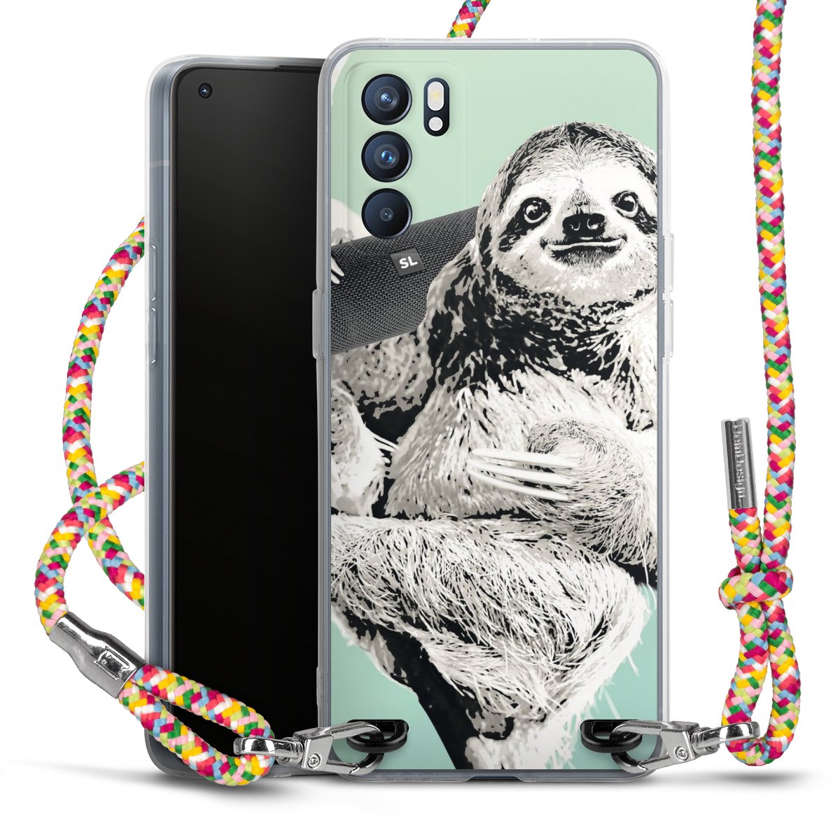 The flexible case is made from a highquality TPU material (thermoplastic Polyurethan). Thanks to its longlasting and break resistant characterisitcs, the case is flexible yet consistent in form and has a great grip and feel. The textile strap made from Polyester gives a chic yet casual accent allowing you to carry your phone like a bag or necklace - a practical gadget perfect for your next adventure. The textile strap is about 1.70 meters long and the length can easily be adjusted through the knots. Our Carry Case is available in Colourful, Mint-Camouflage, Very-Berry, Sahara-Sand and Sparkling-Neon. The ends of the textile strap are covered with metallic end caps to protect them against fraying.