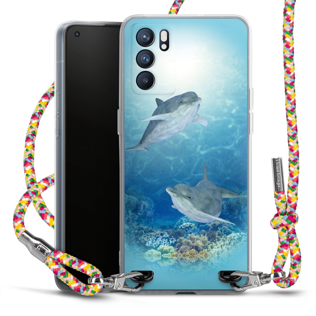 The flexible case is made from a highquality TPU material (thermoplastic Polyurethan). Thanks to its longlasting and break resistant characterisitcs, the case is flexible yet consistent in form and has a great grip and feel. The textile strap made from Polyester gives a chic yet casual accent allowing you to carry your phone like a bag or necklace - a practical gadget perfect for your next adventure. The textile strap is about 1.70 meters long and the length can easily be adjusted through the knots. Our Carry Case is available in Colourful, Mint-Camouflage, Very-Berry, Sahara-Sand and Sparkling-Neon. The ends of the textile strap are covered with metallic end caps to protect them against fraying.
