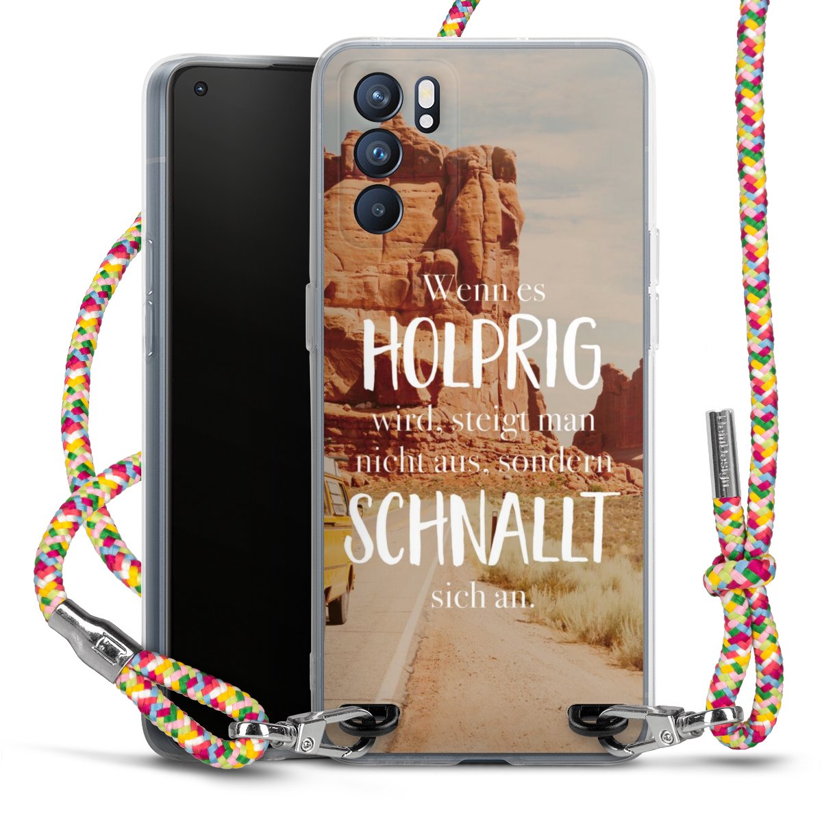 The flexible case is made from a highquality TPU material (thermoplastic Polyurethan). Thanks to its longlasting and break resistant characterisitcs, the case is flexible yet consistent in form and has a great grip and feel. The textile strap made from Polyester gives a chic yet casual accent allowing you to carry your phone like a bag or necklace - a practical gadget perfect for your next adventure. The textile strap is about 1.70 meters long and the length can easily be adjusted through the knots. Our Carry Case is available in Colourful, Mint-Camouflage, Very-Berry, Sahara-Sand and Sparkling-Neon. The ends of the textile strap are covered with metallic end caps to protect them against fraying.