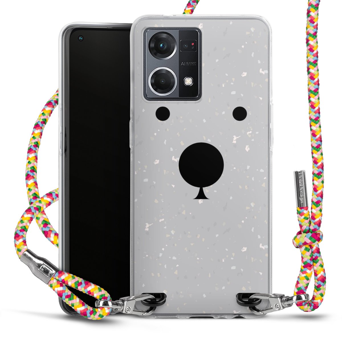 The flexible case is made from a highquality TPU material (thermoplastic Polyurethan). Thanks to its longlasting and break resistant characterisitcs, the case is flexible yet consistent in form and has a great grip and feel. The textile strap made from Polyester gives a chic yet casual accent allowing you to carry your phone like a bag or necklace - a practical gadget perfect for your next adventure. The textile strap is about 1.70 meters long and the length can easily be adjusted through the knots. Our Carry Case is available in Colourful, Mint-Camouflage, Very-Berry, Sahara-Sand and Sparkling-Neon. The ends of the textile strap are covered with metallic end caps to protect them against fraying.